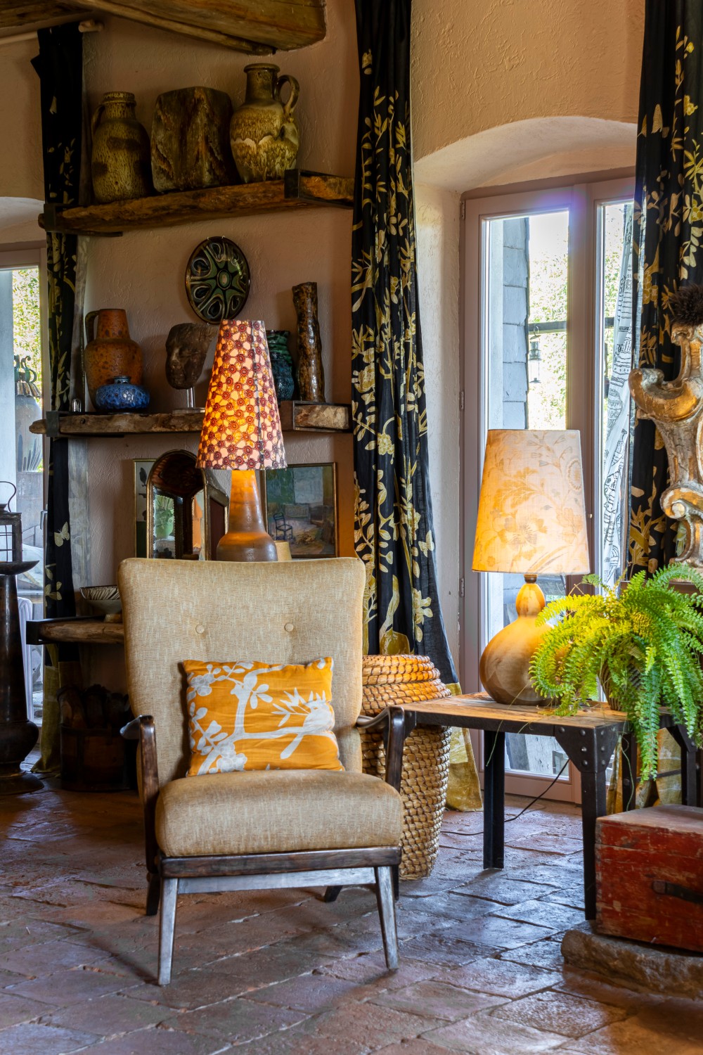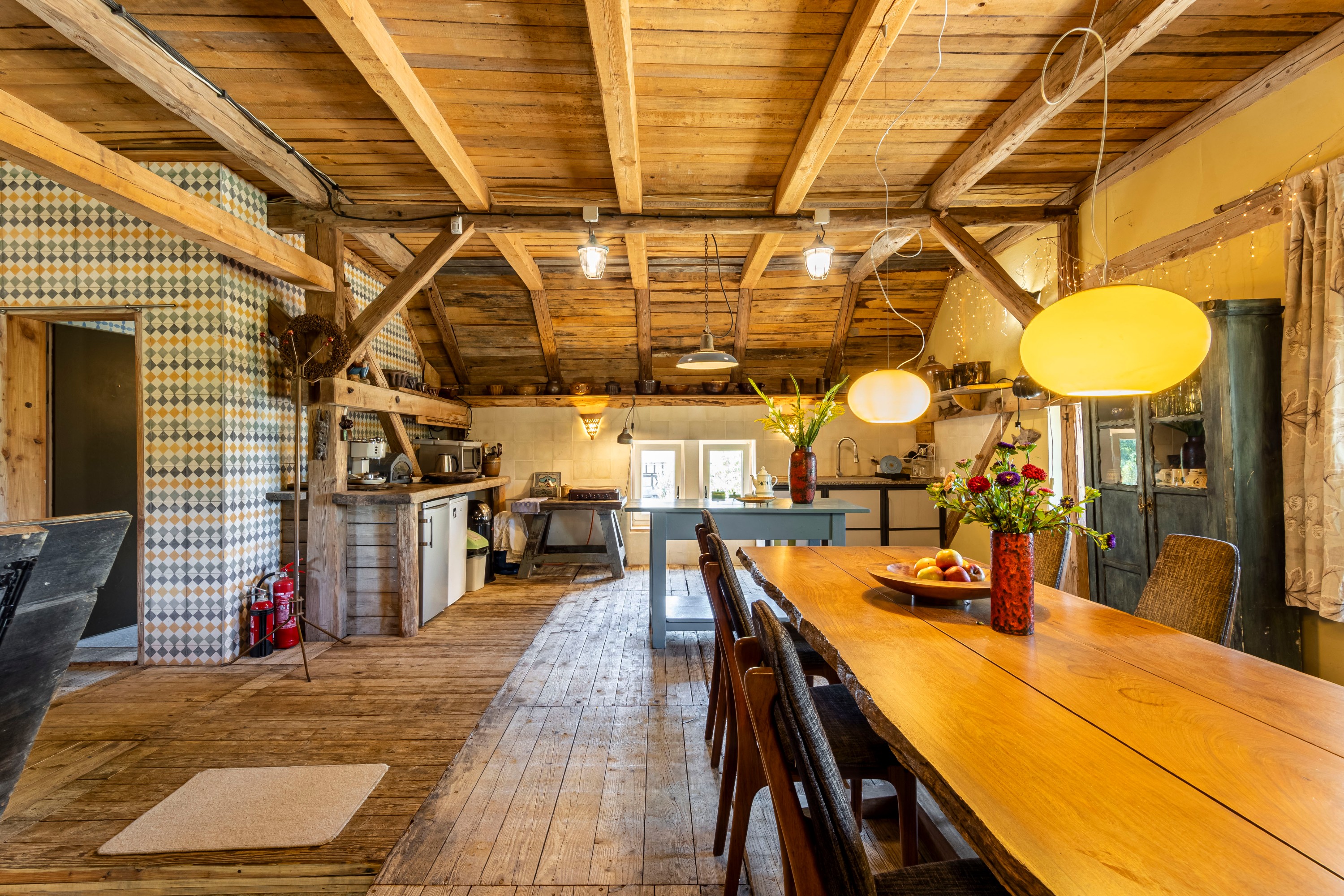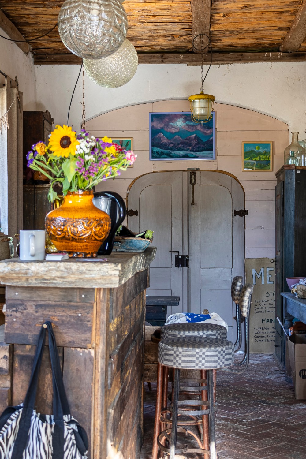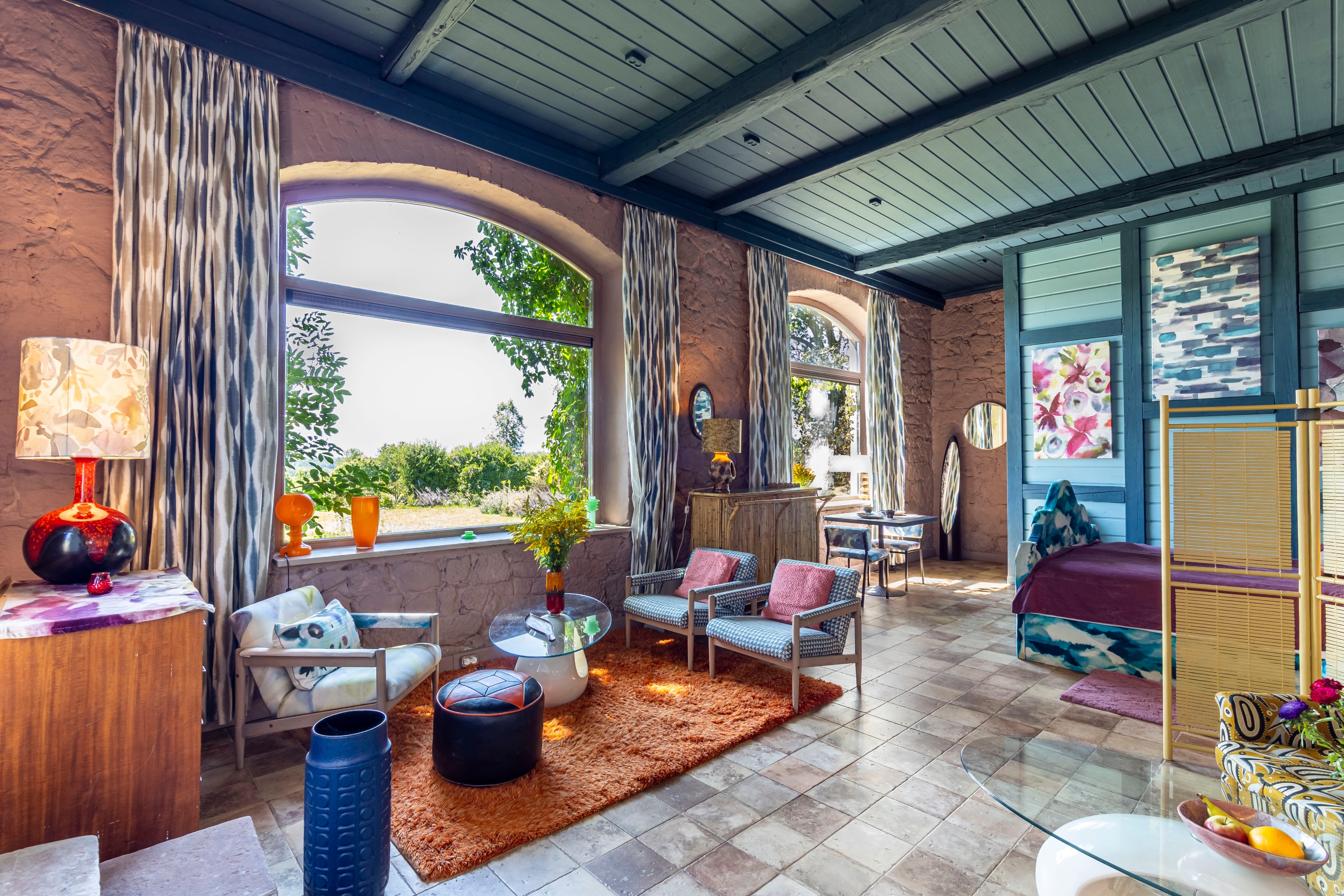 El escenógrafo y artista neerlandés Urian Hopman no dejó nada al azar. Casi todo en este lugar ha sido concebido y fabricado a mano por él mismo: ventanas, muebles, tejidos y muros cuentan una historia estética única. El resultado es un espacio vital cuidadosamente orquestado, en el que cada rincón, cada detalle y cada línea han sido pensados con esmero. Más de veinte años de trabajo constante han dado lugar a una obra ahora terminada.