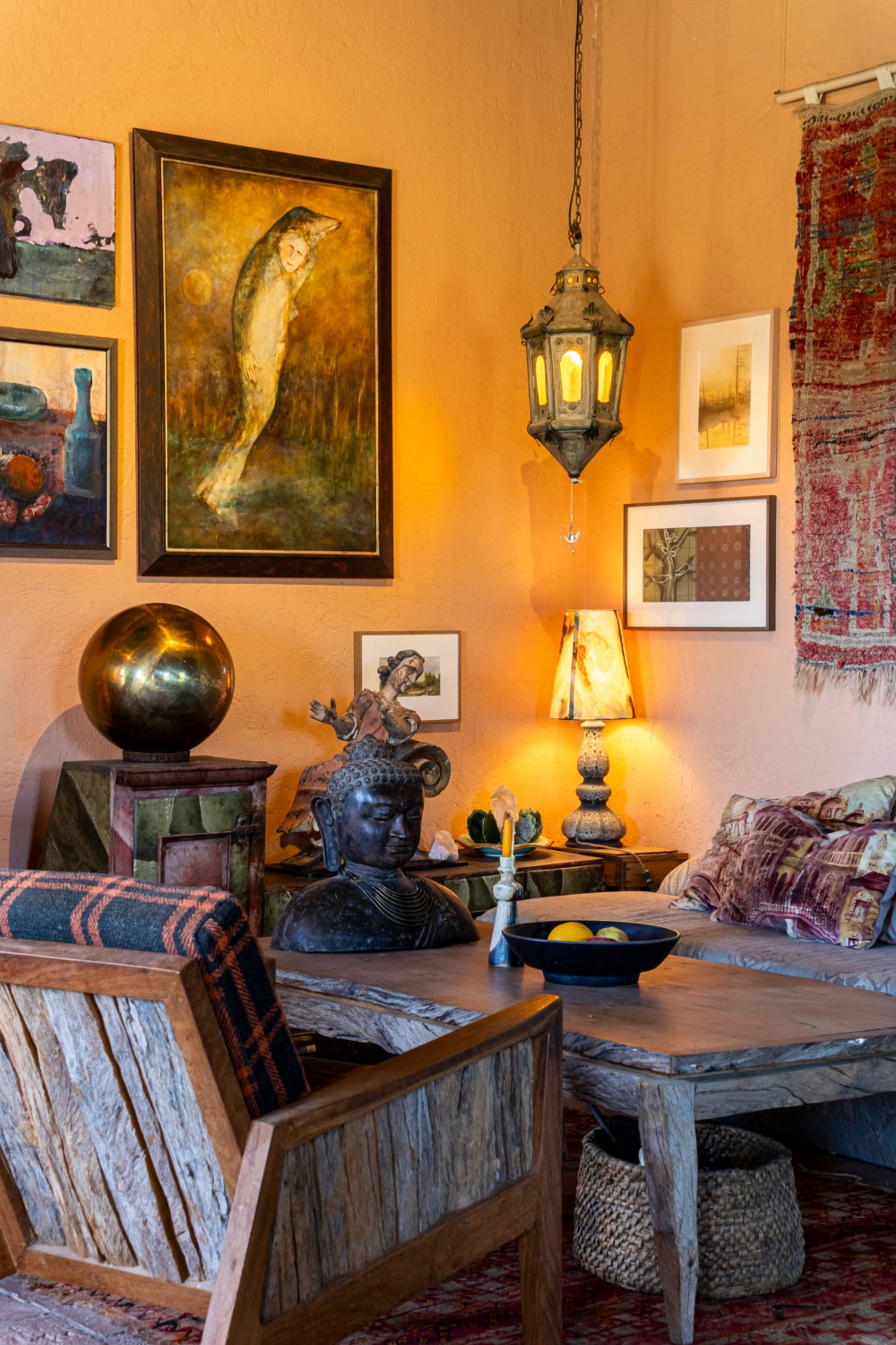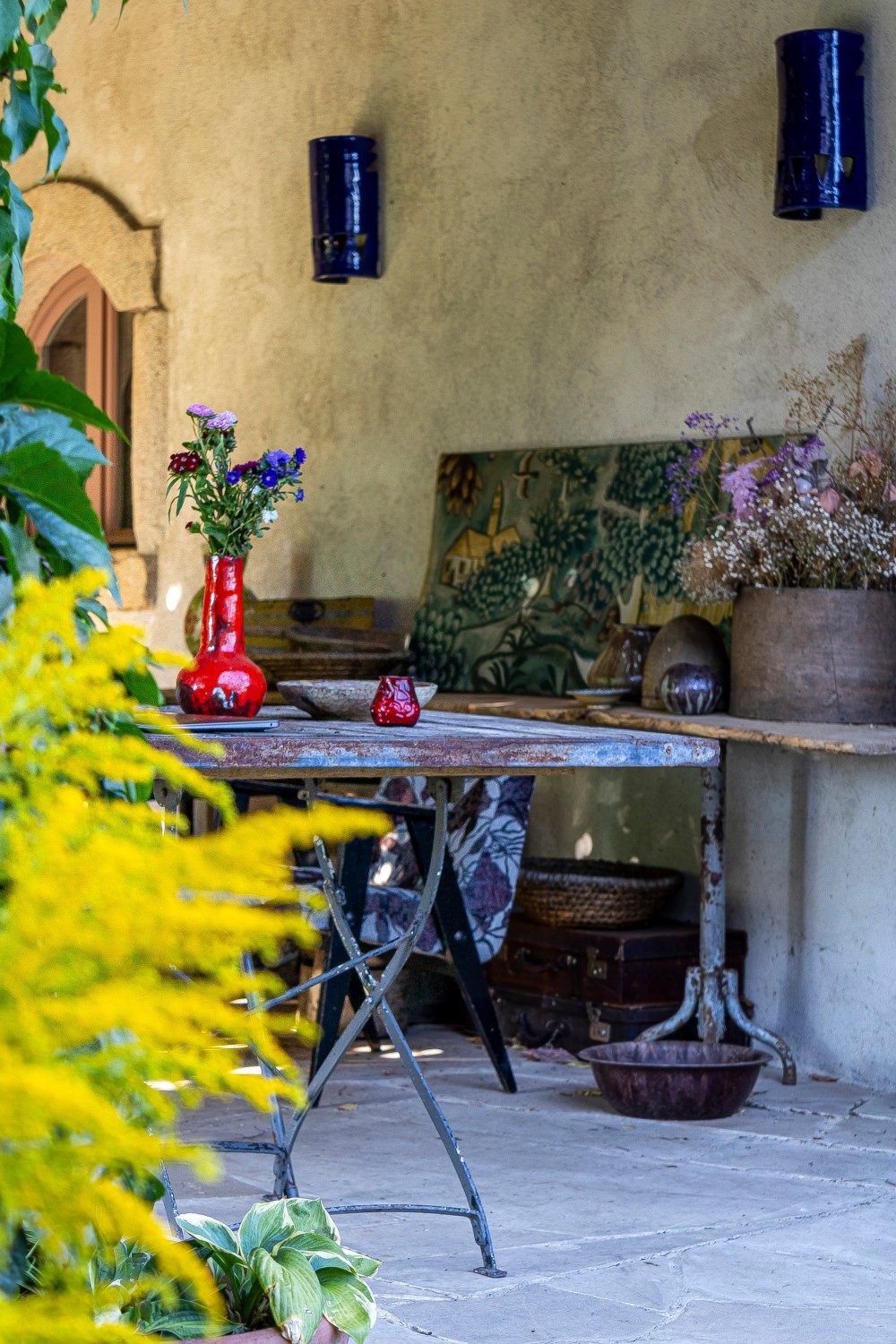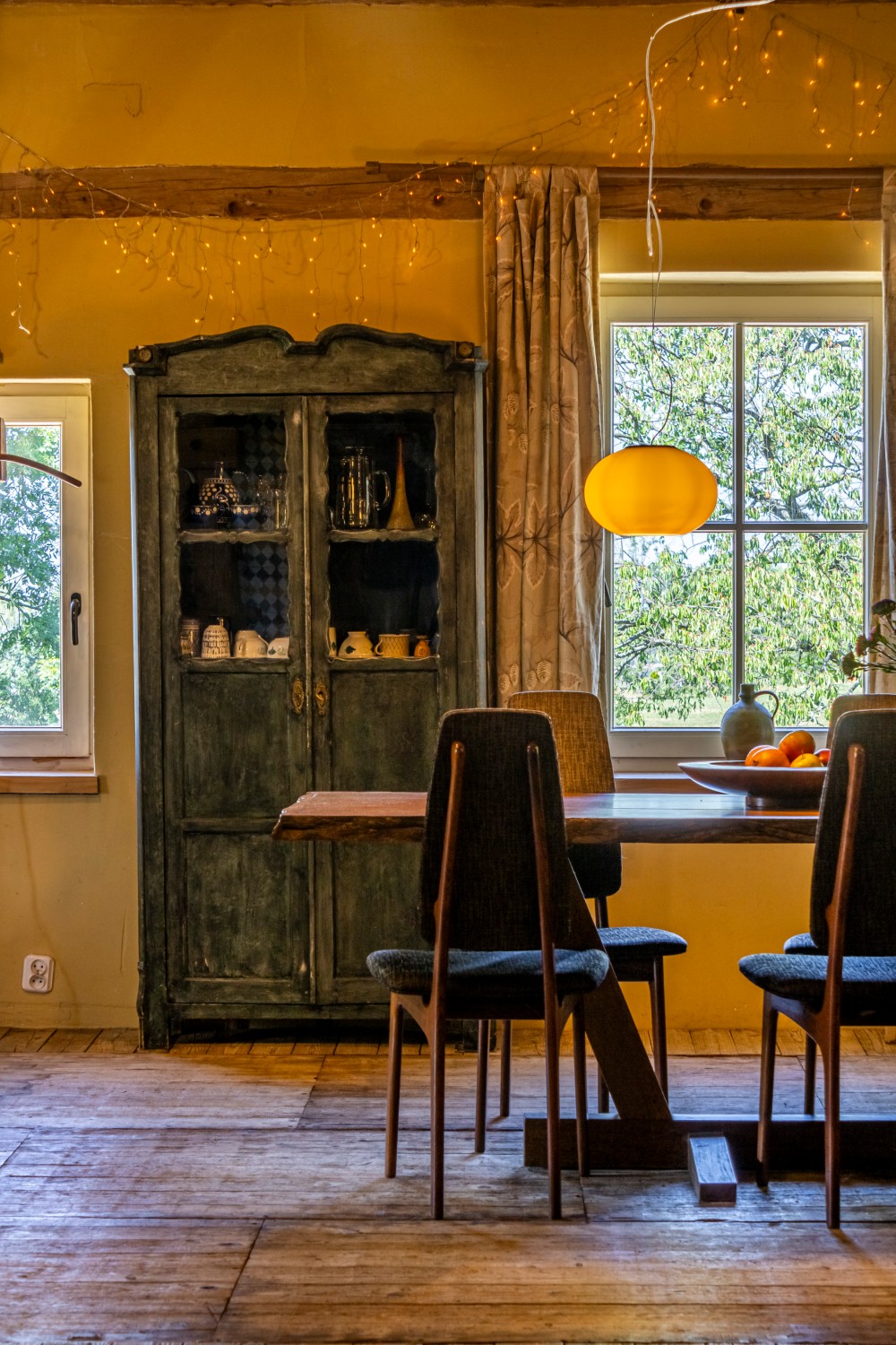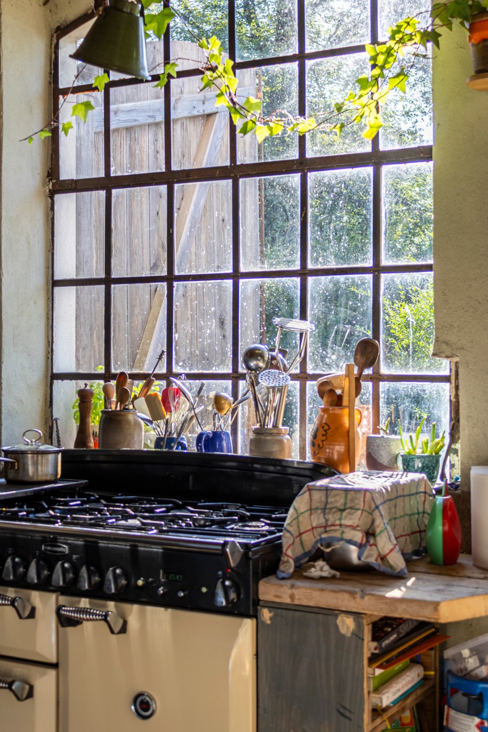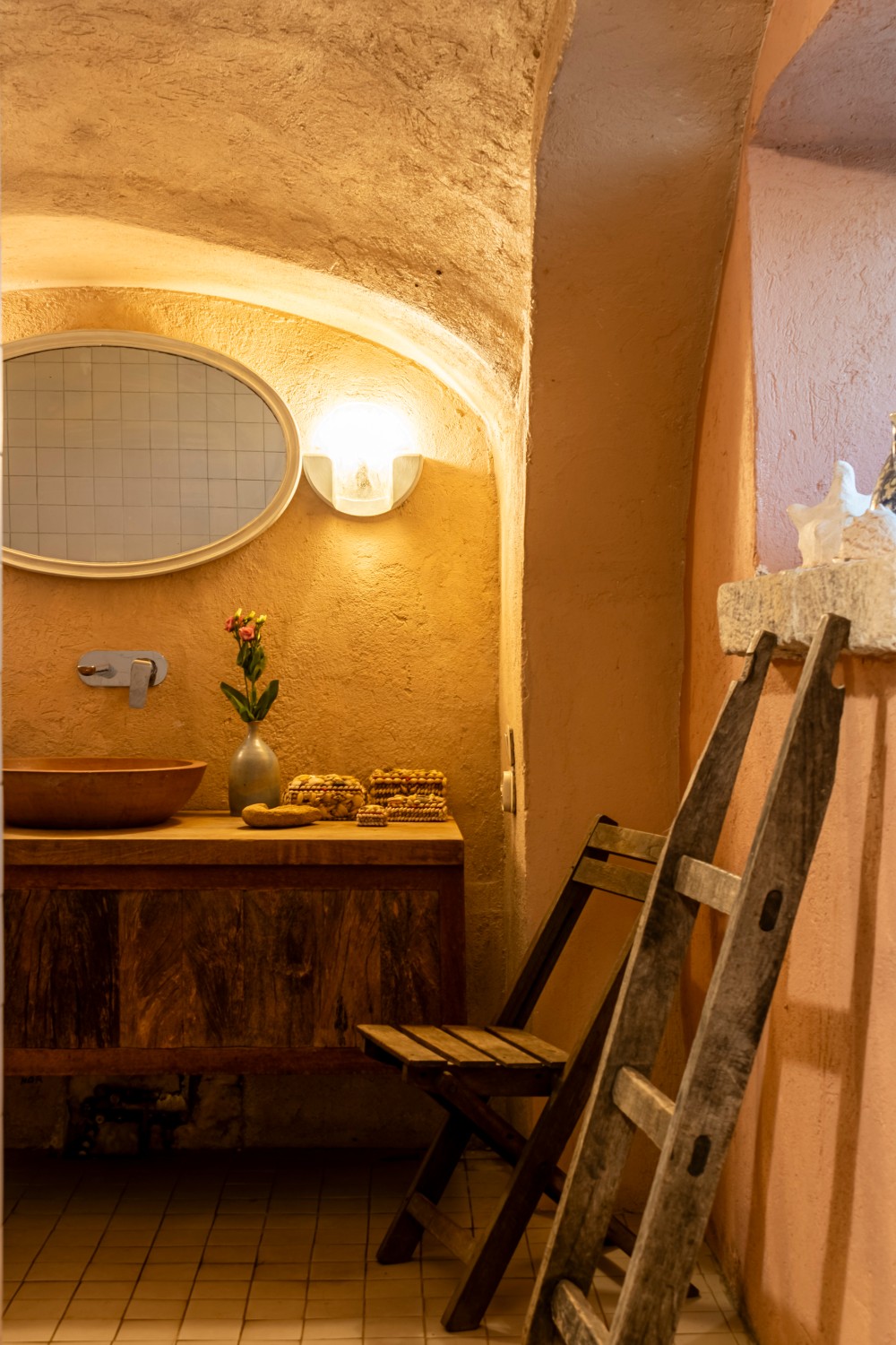 El escenógrafo y artista neerlandés Urian Hopman no dejó nada al azar. Casi todo en este lugar ha sido concebido y fabricado a mano por él mismo: ventanas, muebles, tejidos y muros cuentan una historia estética única. El resultado es un espacio vital cuidadosamente orquestado, en el que cada rincón, cada detalle y cada línea han sido pensados con esmero. Más de veinte años de trabajo constante han dado lugar a una obra ahora terminada.