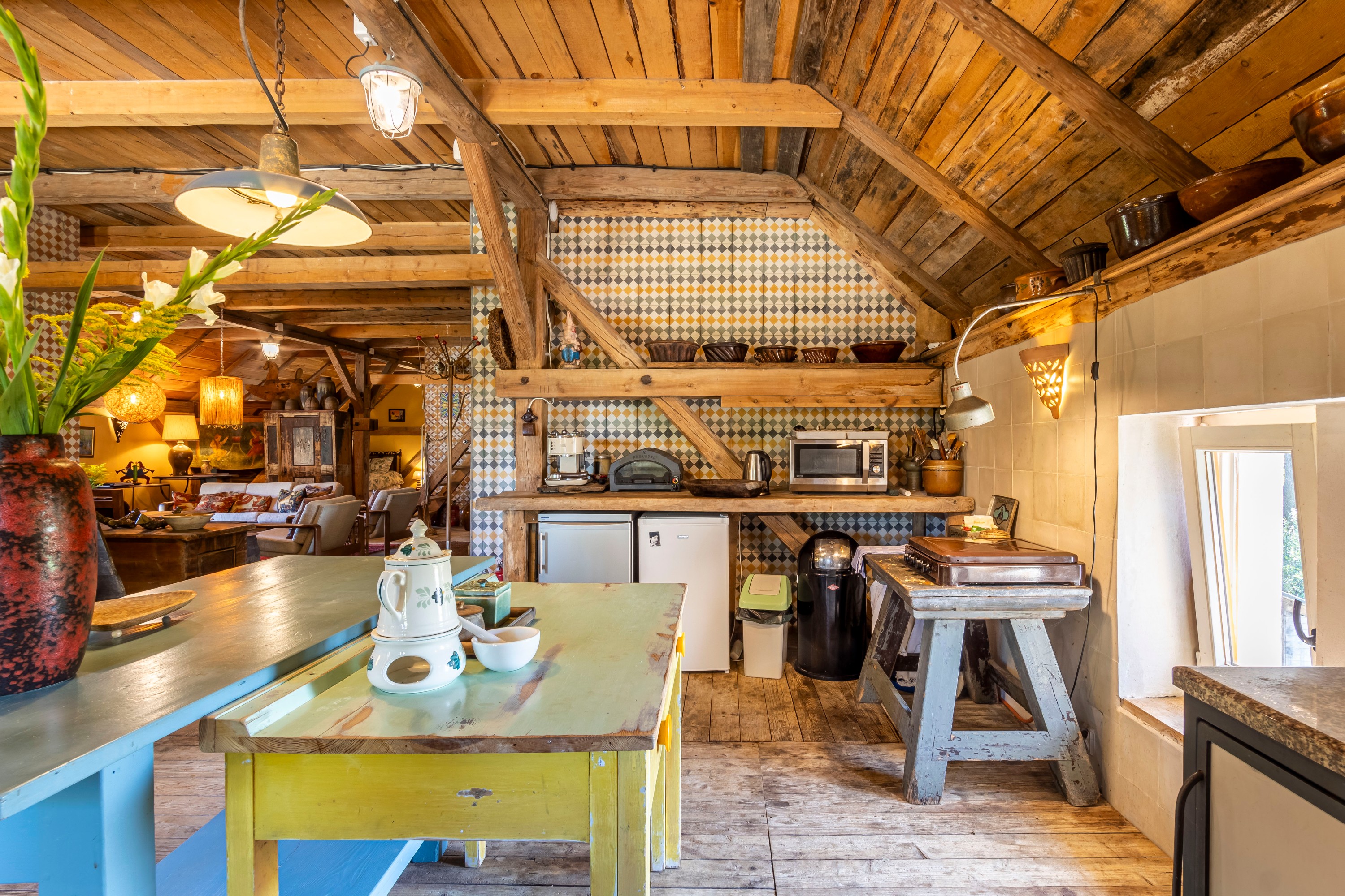 Antigua posada del siglo XVIII restaurada con elegancia rústica. Salón, cocina, terraza y dormitorio. Un espacio para amantes del diseño, lleno de detalles artísticos y una estética lúdica. Superficie: más de 200 m².