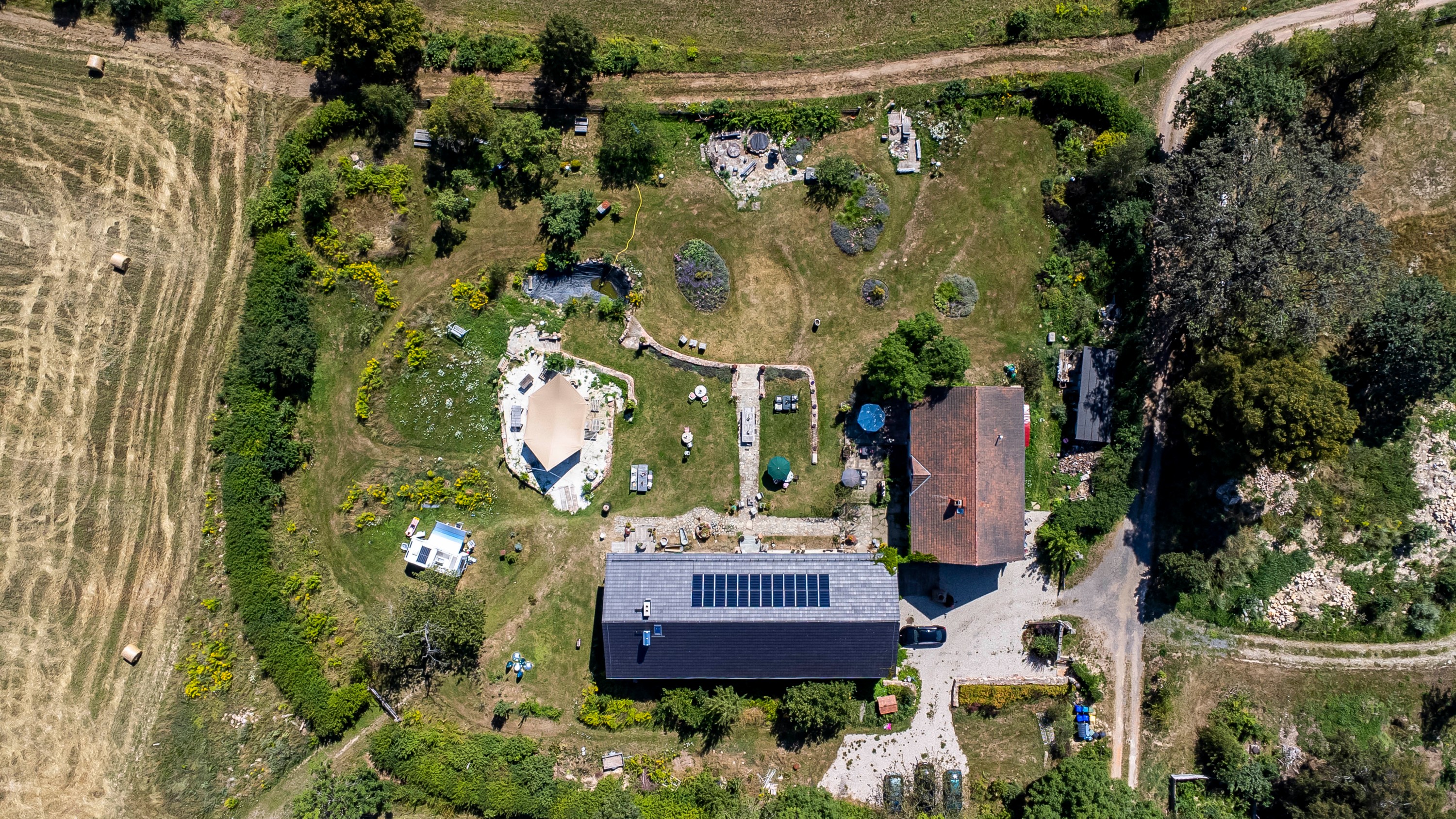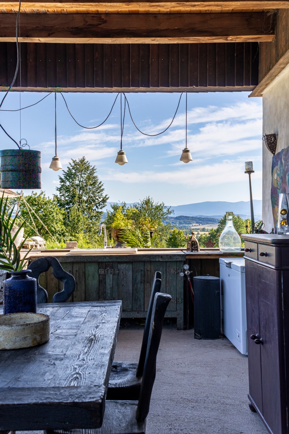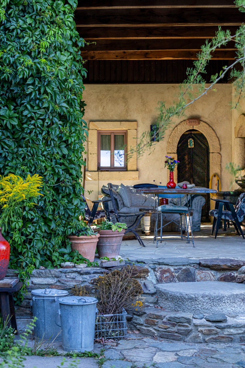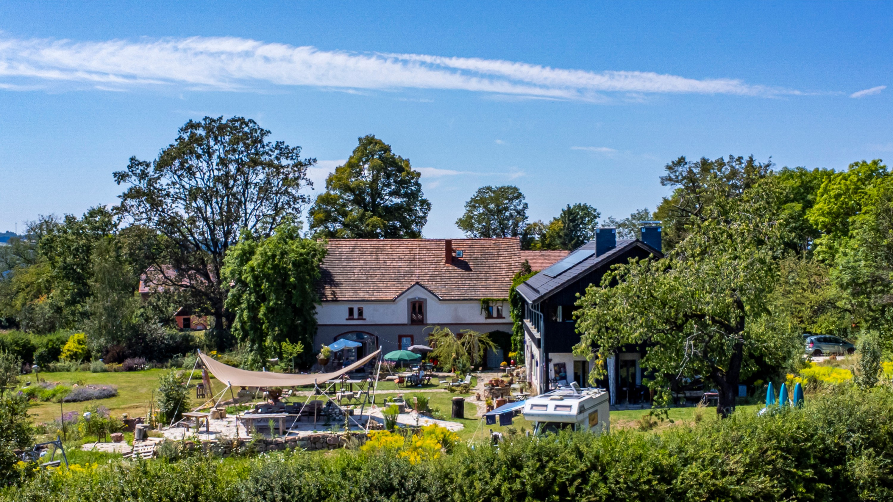 Urian Hopman adquirió una de las parcelas más hermosas del pueblo, en su extremo, con vistas completamente despejadas al paisaje, y dos antiguos edificios agrícolas de época alemana. Ambos fueron restaurados con esmero. Hoy funcionan parcialmente como vivienda y taller del artista y parcialmente como alojamiento agroturístico de espíritu sostenible, inspirado en la filosofía del slow living.