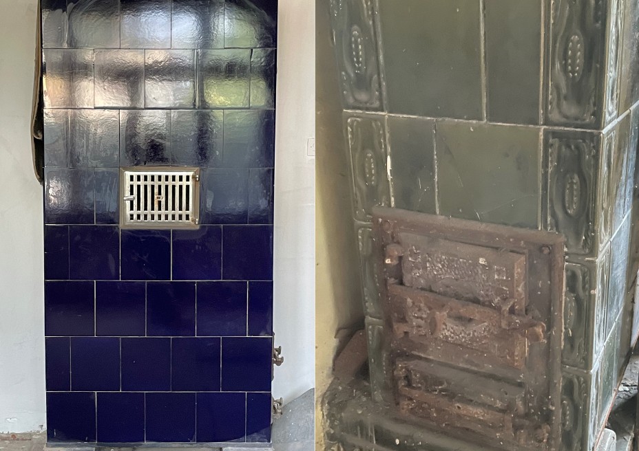 - Arquitectura original: puertas talladas, escalera representativa, estufas de cerámica, carpintería original.
