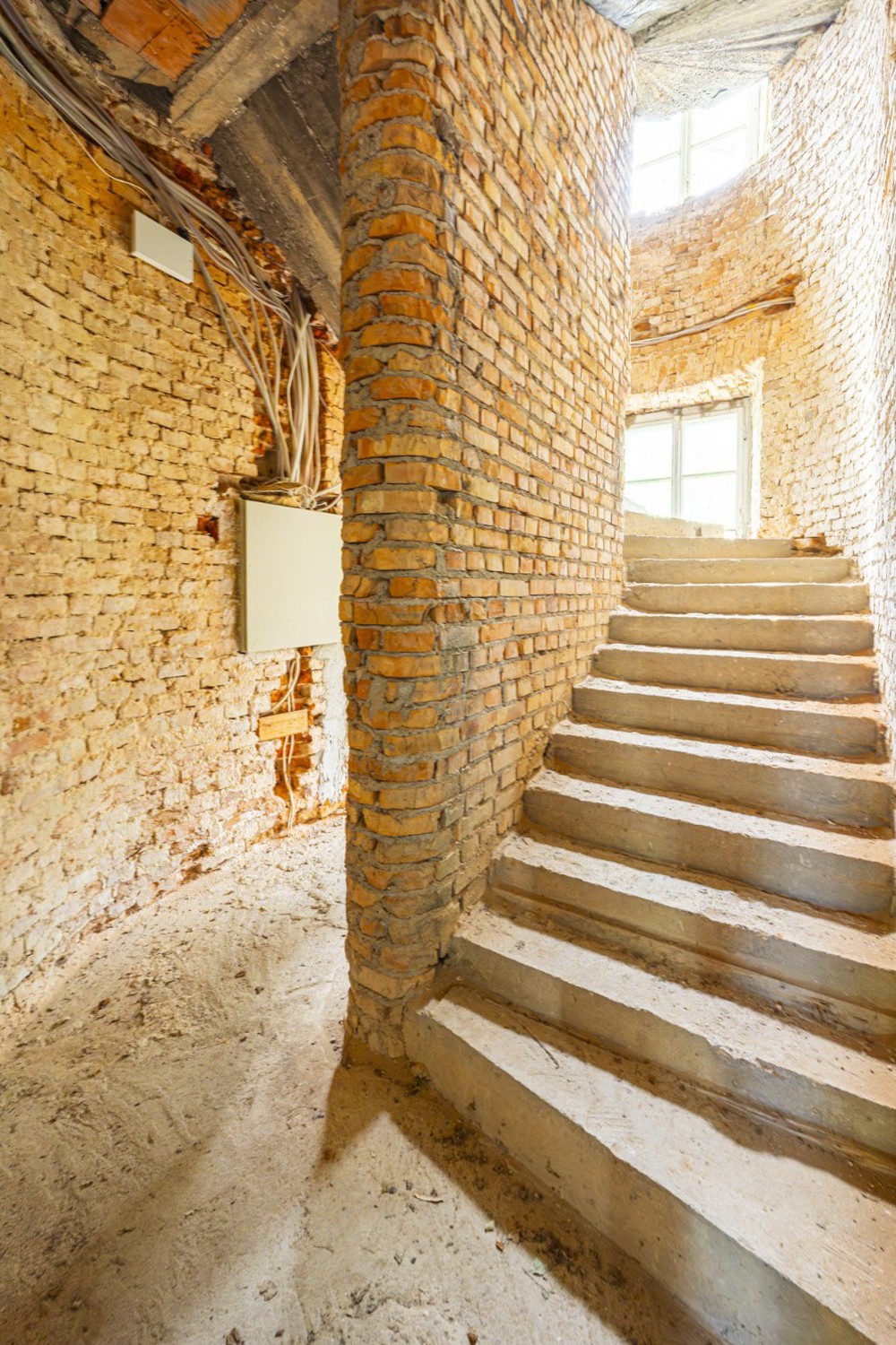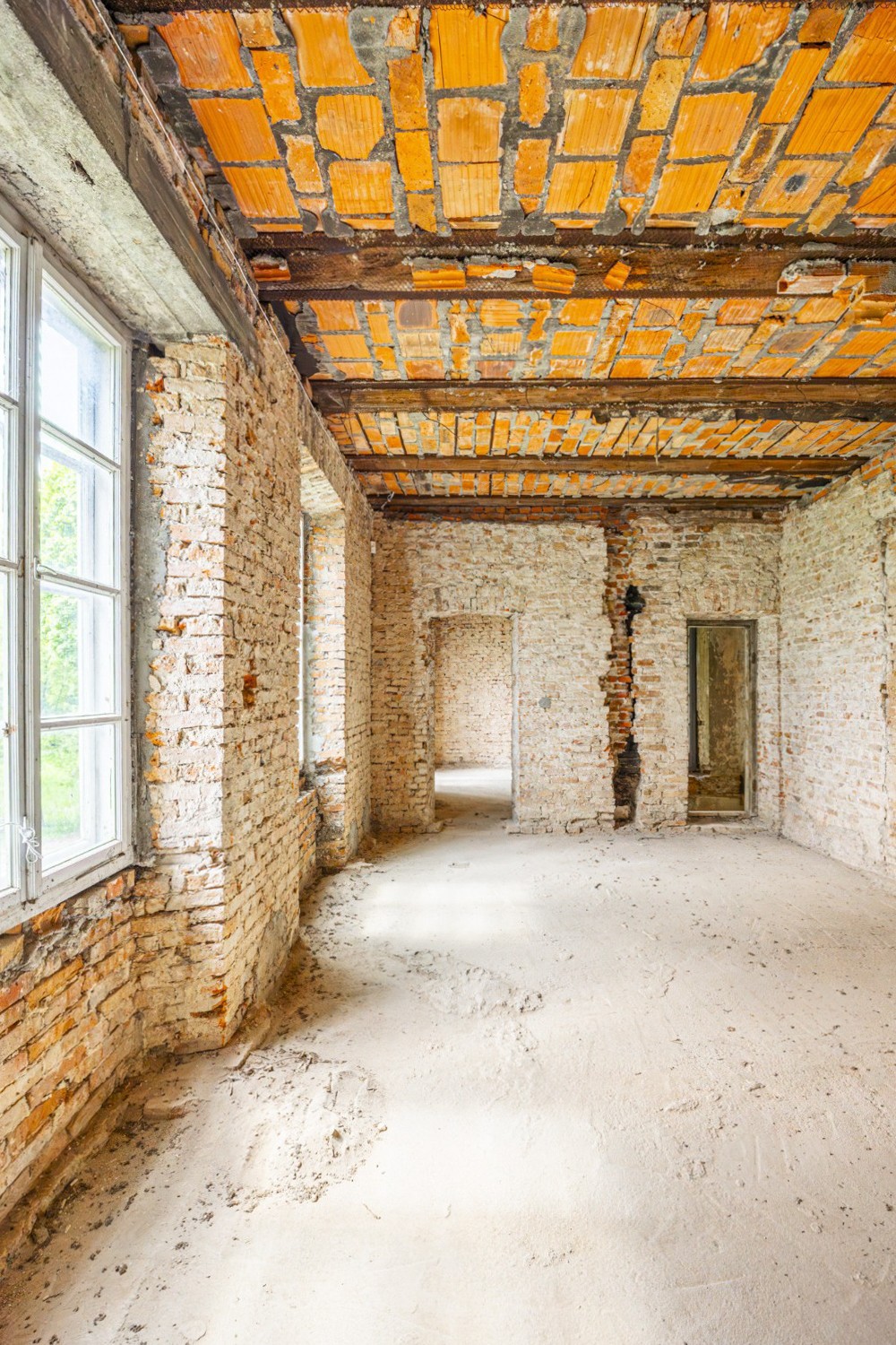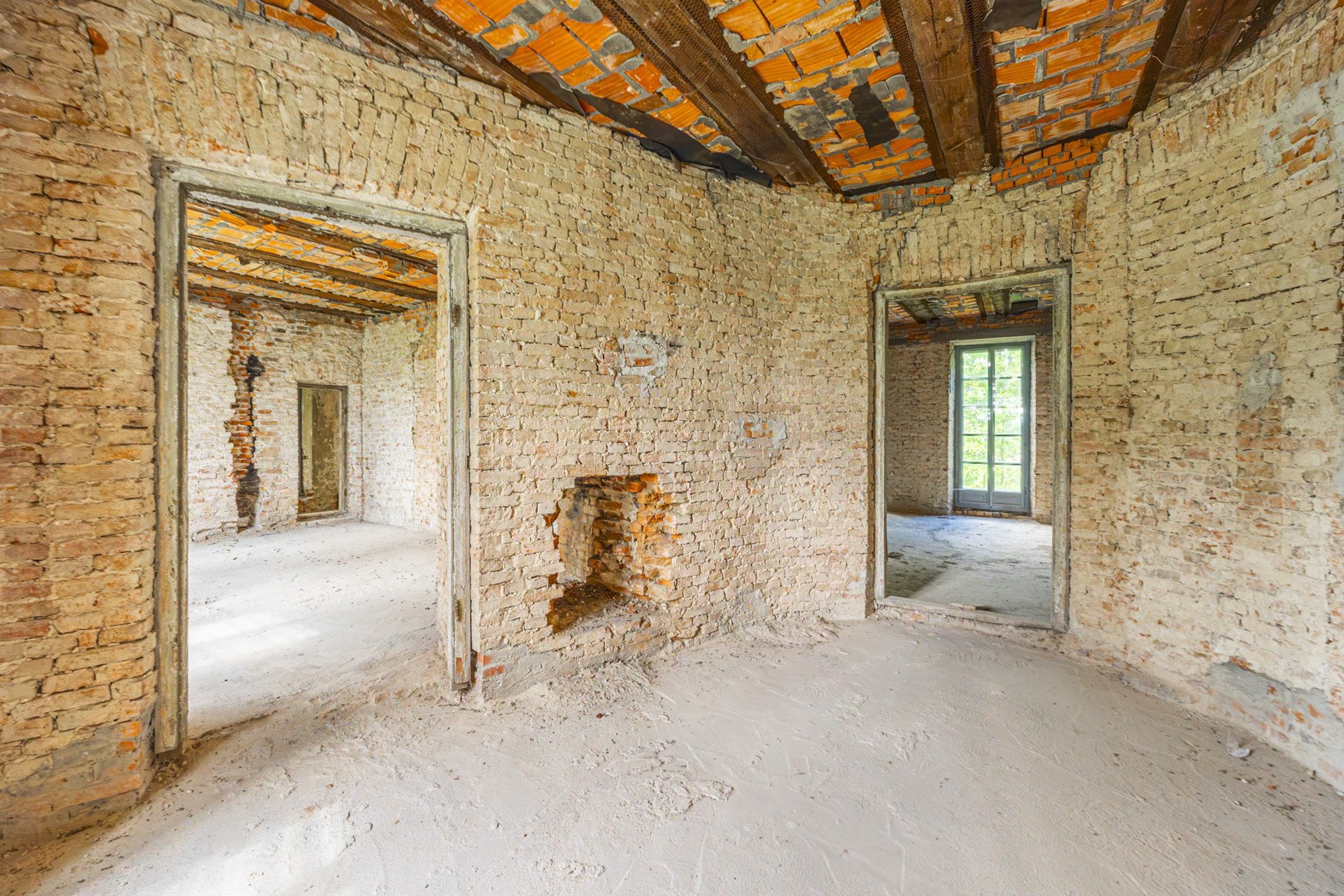 La estructura está en condiciones estables, ofreciendo una base sólida para las reformas previstas. Los techos originales de vigas de madera fueron sustituidos por losas modernas de hormigón, y diez ventanas fueron restauradas cuidadosamente con la aprobación de las autoridades de patrimonio. El techo ha sido reparado y conservado. Además, ya cuenta con conexión eléctrica y suministro propio de agua a través de un pozo privado.