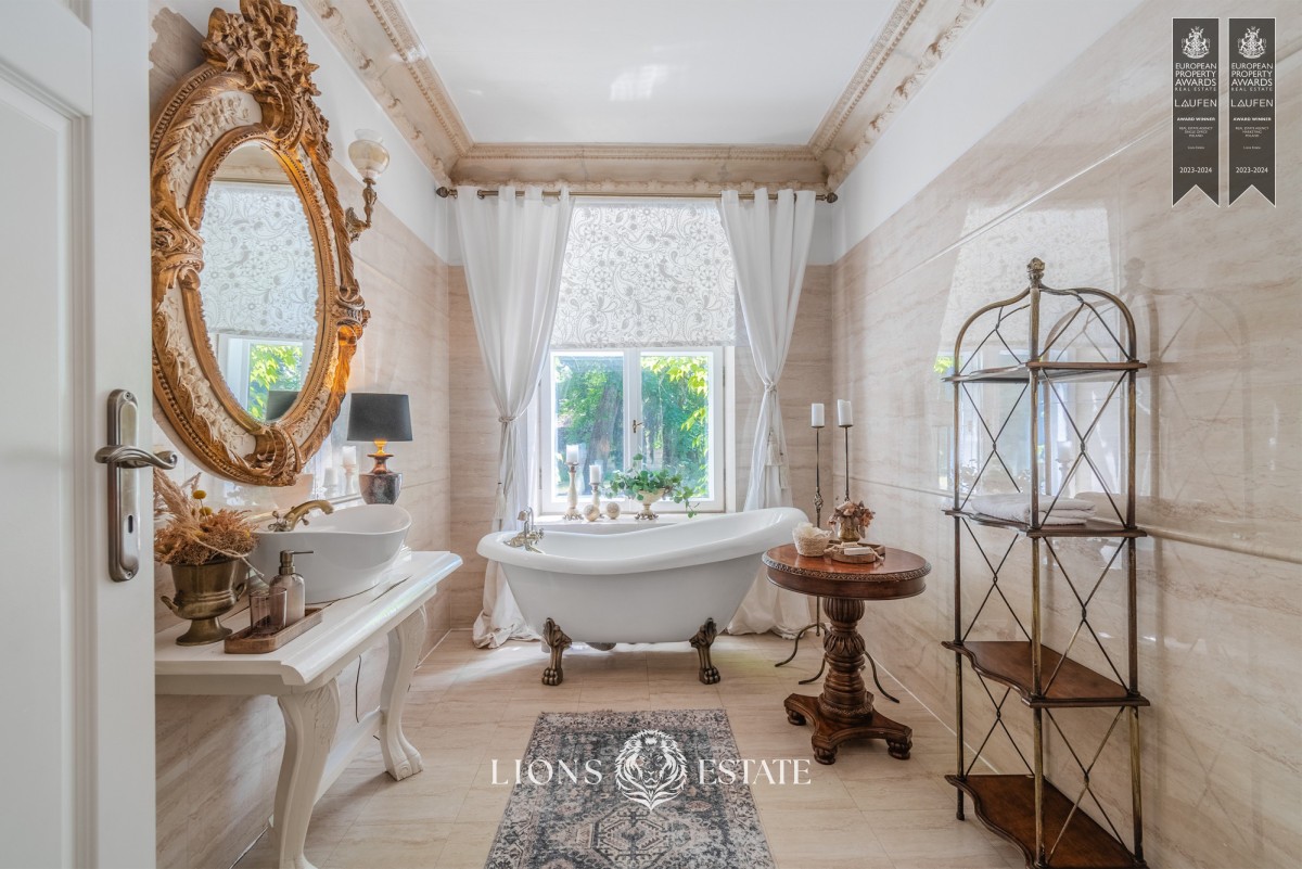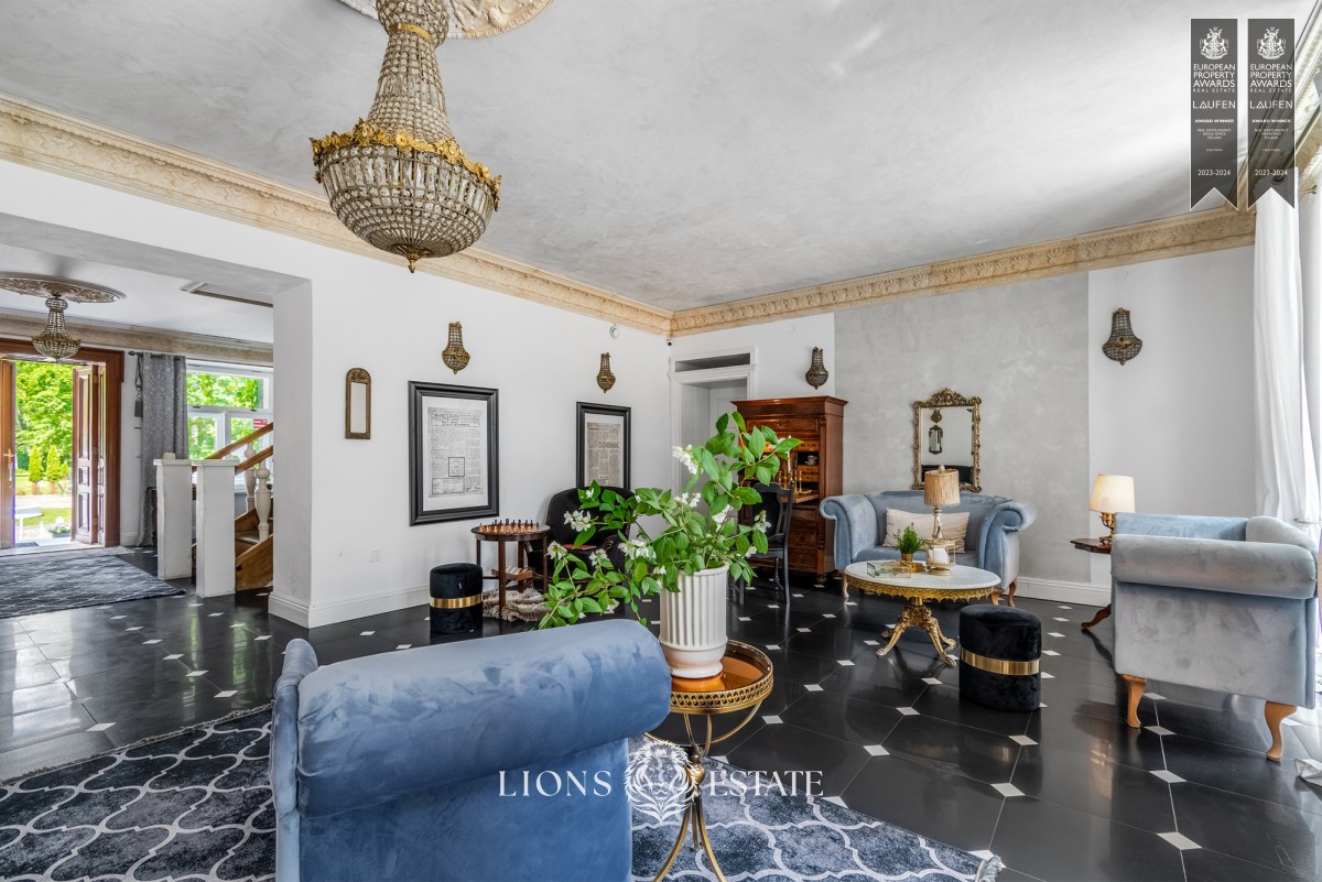 Una propiedad excepcional con una arquitectura única y una historia rica. Desde el legado histórico de Piotr Walewski hasta su uso como escuela, y la cuidadosa renovación que ha restaurado su antiguo esplendor, esta mansión fusiona lujo y tradición. Los interiores están diseñados con mucho esmero. El tamaño del terreno y el espacio generoso satisfacen numerosas necesidades tanto en el ámbito privado como en el comercial.