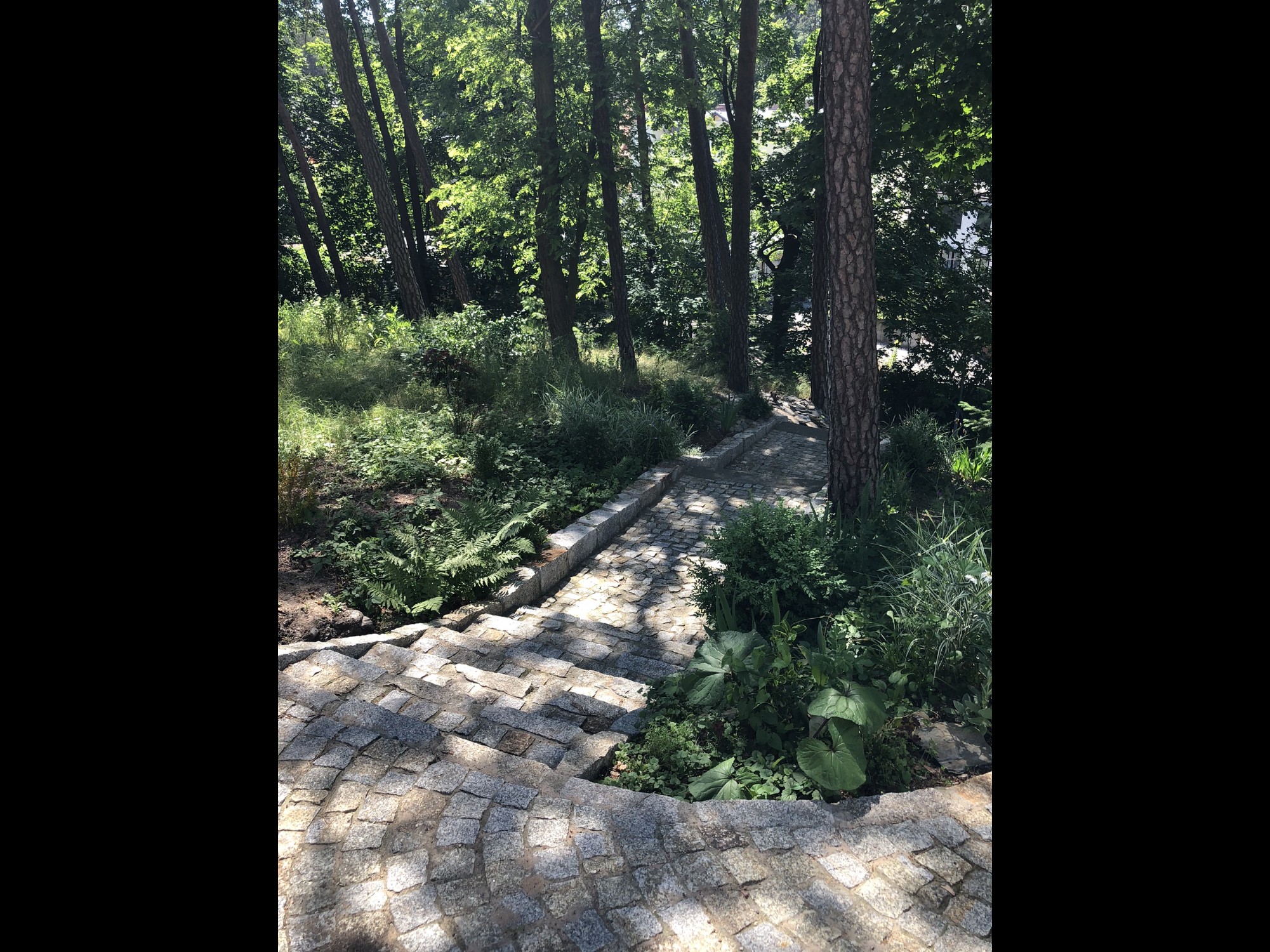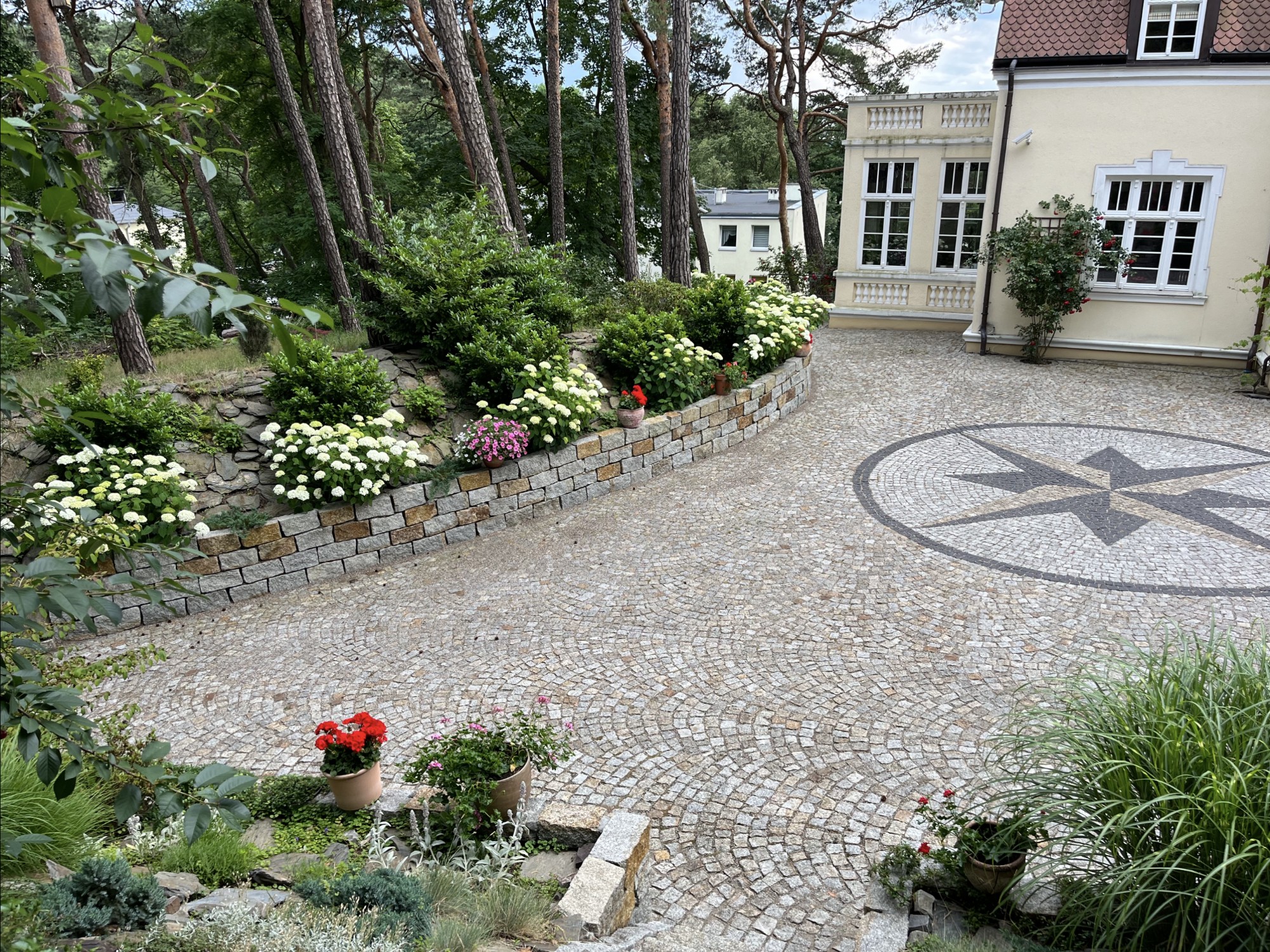 La propiedad se sitúa en la parte oriental de Barlinek, en la calle Strzelecka 23, rodeada por árboles centenarios que se funden suavemente con un bosquecillo que se extiende hacia las afueras orientales de la ciudad.
