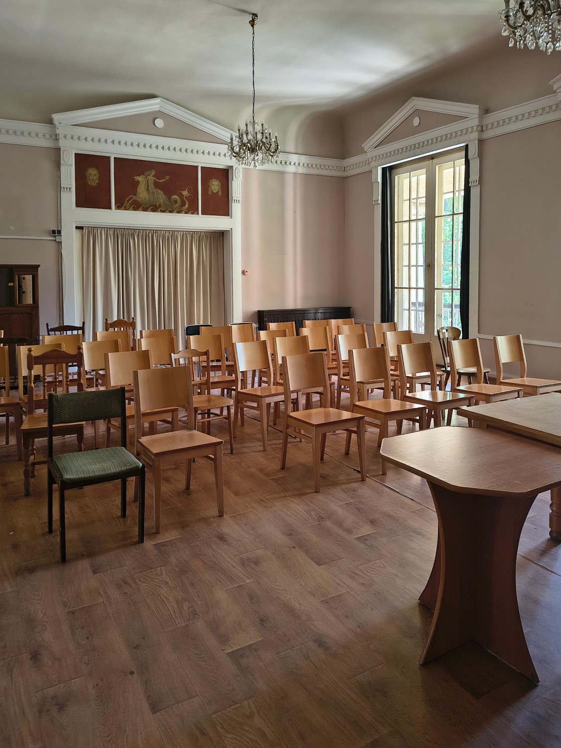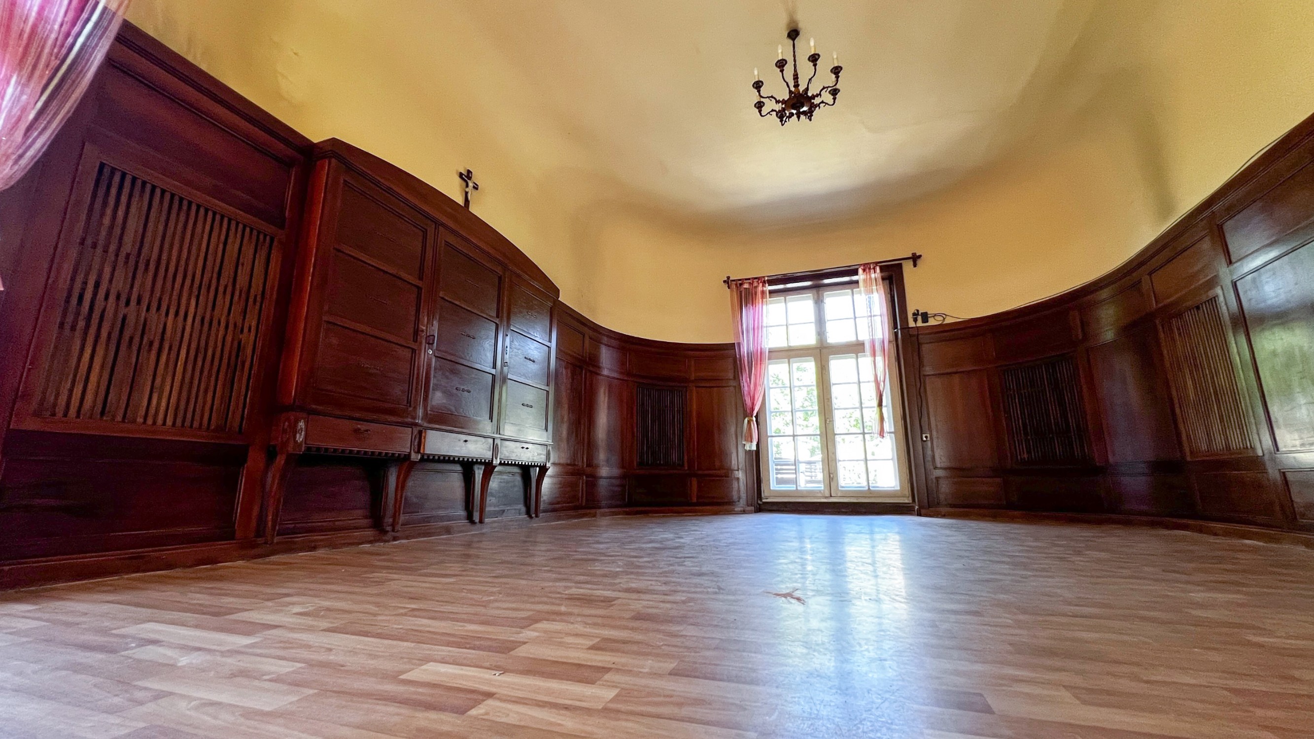 Hall de entrada Gran escalera Chimenea Sala de baile Torre Galería Balcón Frescos Terraza Techos altos Estucos Arcade Capilla
