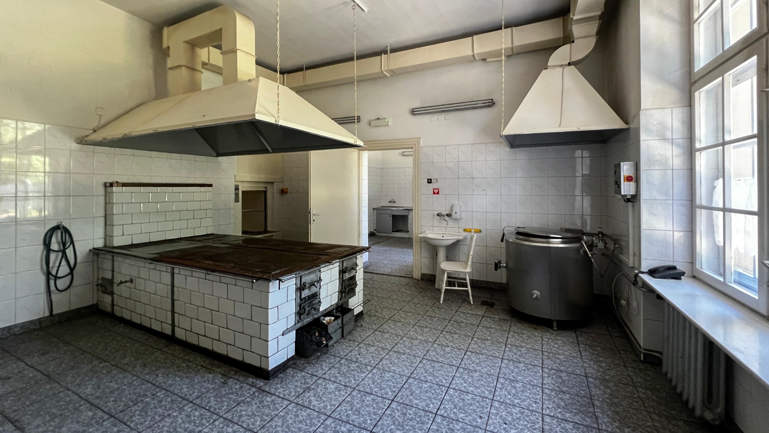 • Edificio auxiliar con bóveda de cañón (411,50 m²): protegido como patrimonio (Registro A/744/2021)