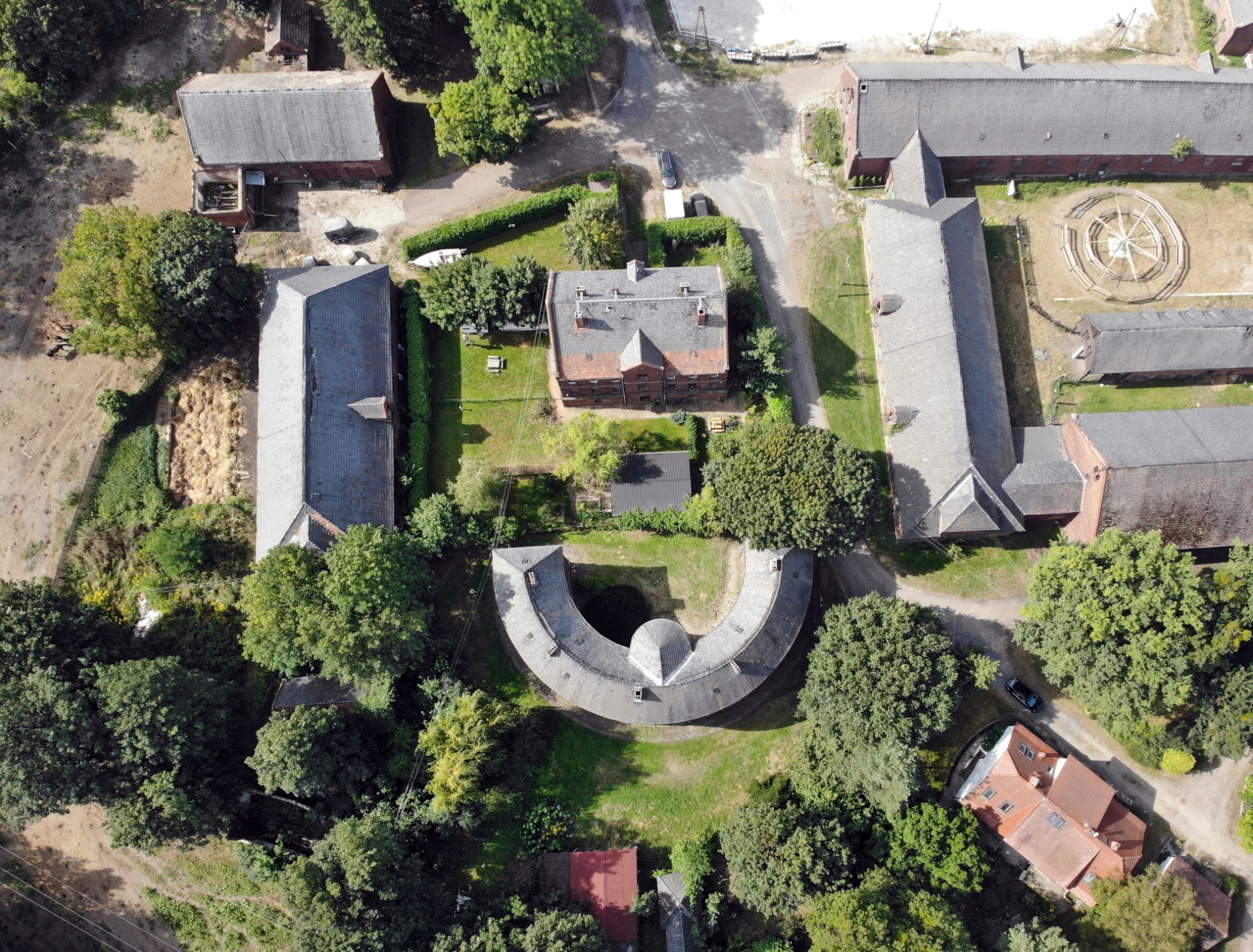 Conocida como “Redita na Ostrówku”, la construcción presenta una planta semicircular con un cuerpo central en forma de exedra. Concebida originalmente con fines defensivos, en la planta baja conserva bóvedas de ladrillo macizo y un sistema de troneras horizontales. En el siglo XIX fue transformada en profundidad y adaptada para uso residencial, con una ampliación adicional en el año 1875.
