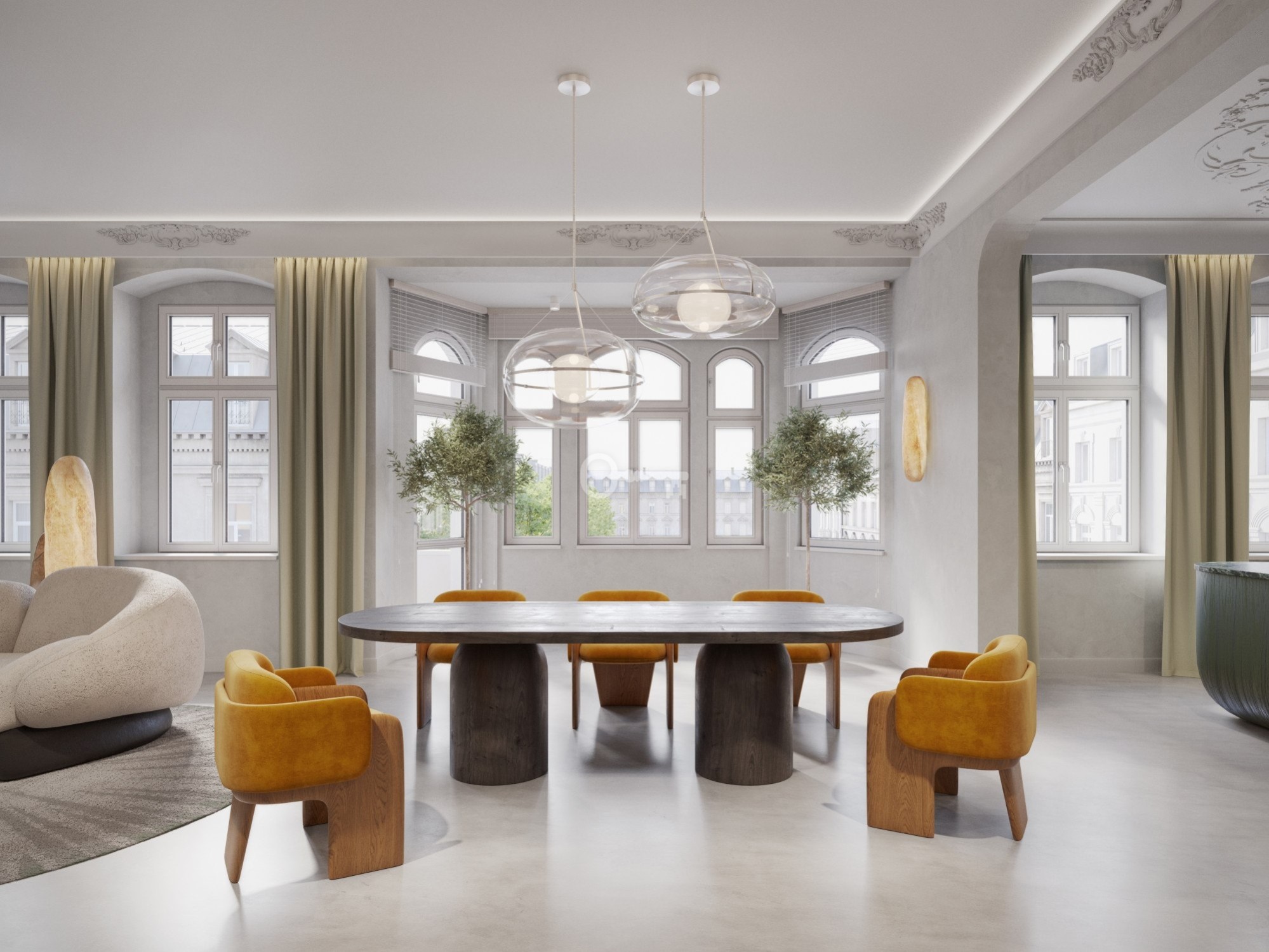 El apartamento de 67 m² se encuentra en un edificio histórico rehabilitado de 1899 en el centro de Wrocław. La altura de los techos alcanza hasta 2,75 m. La vivienda dispone de dos habitaciones, balcón, calefacción por suelo radiante, aire acondicionado, puerta de entrada de roble y trastero. La calefacción es central urbana.