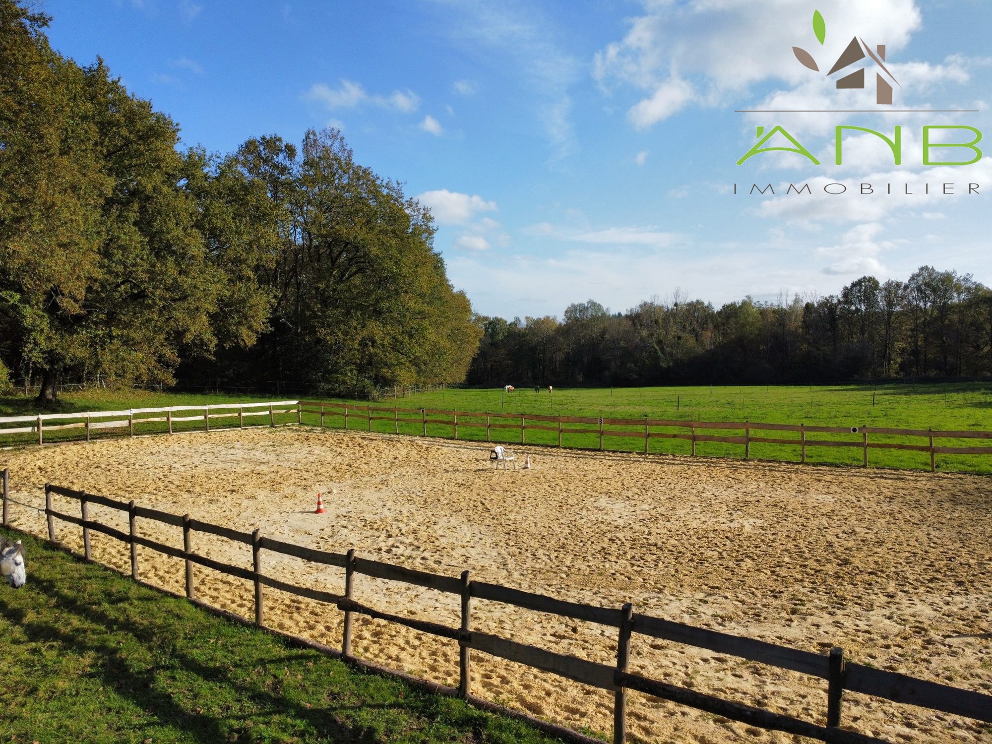 La finca de 10 hectáreas es ideal para la cría de caballos, con praderas valladas, un refugio e incluso una pequeña pista de equitación. Un gran edificio auxiliar adicional ofrece más opciones de uso.