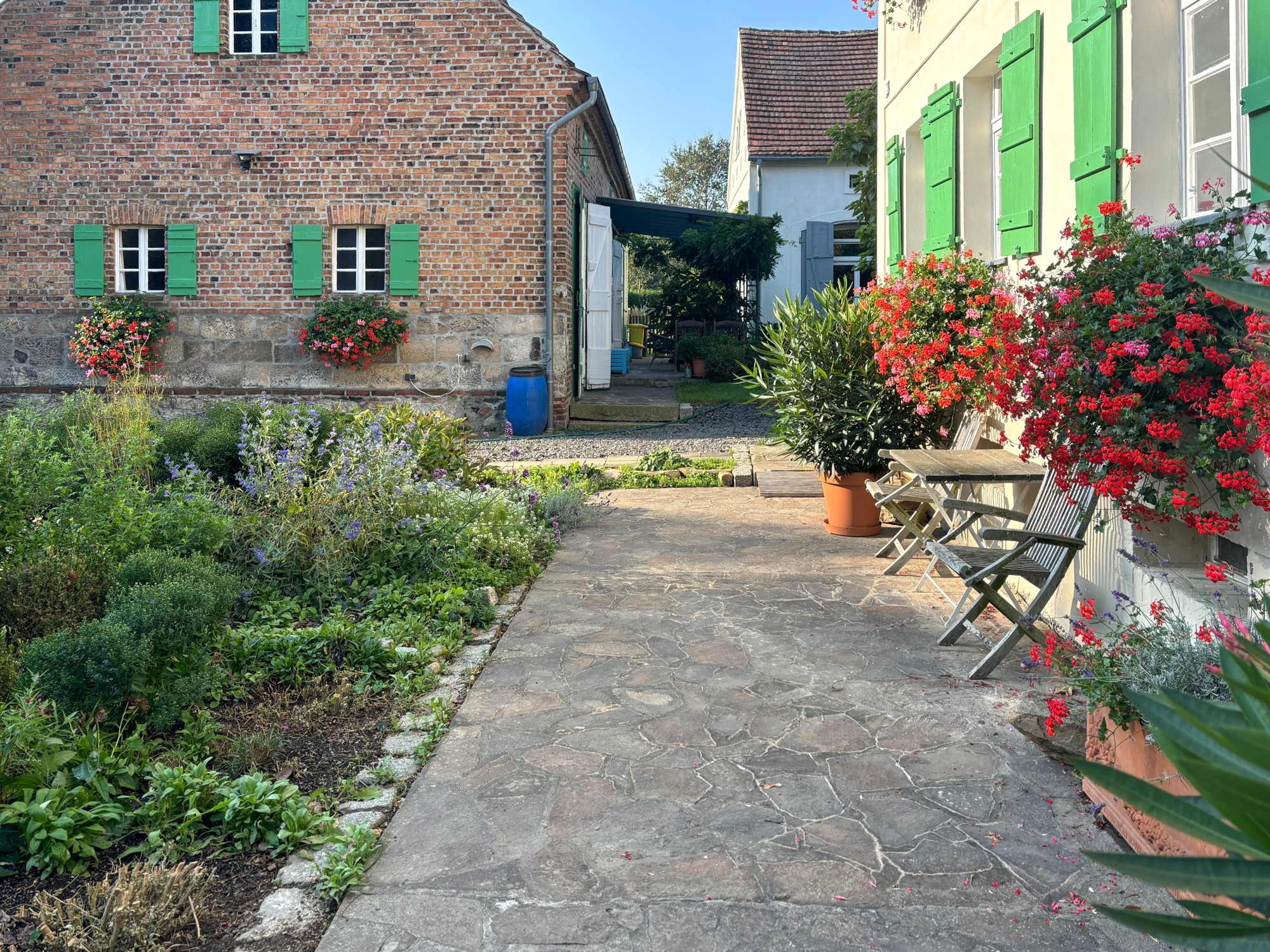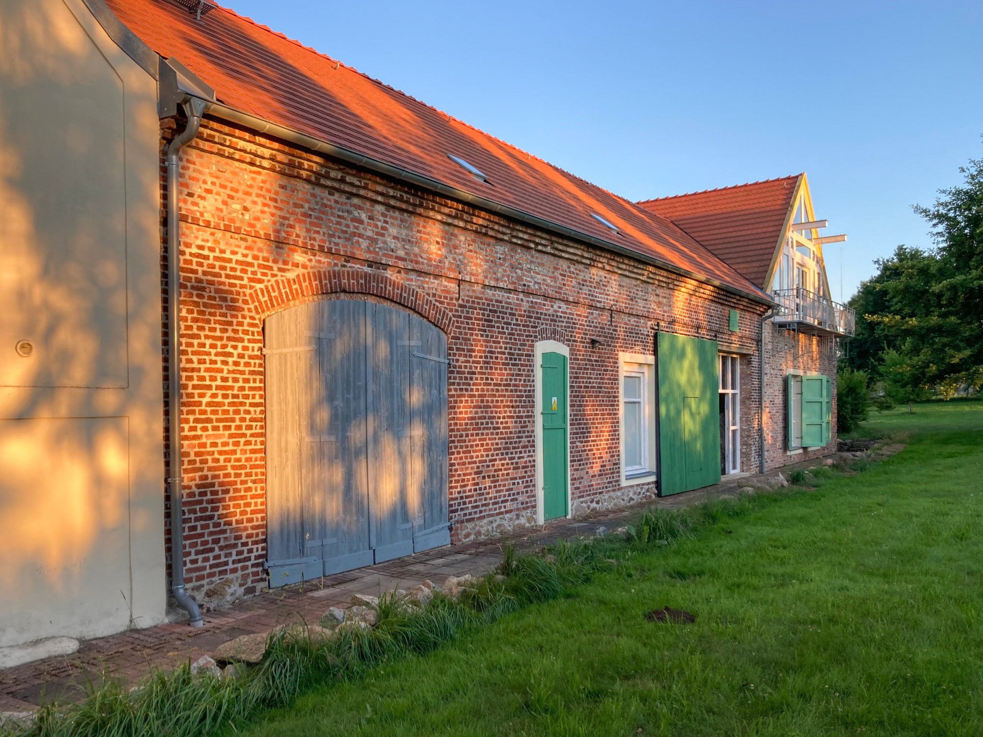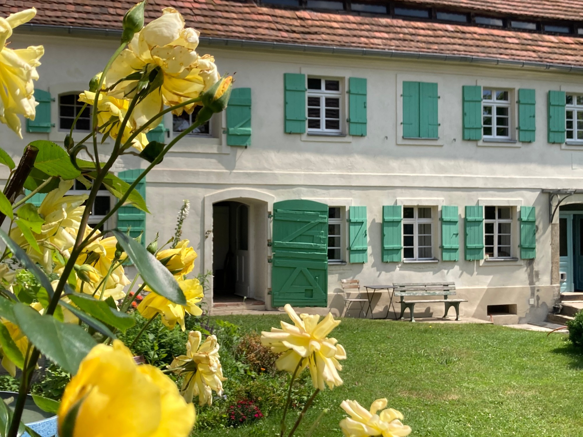 Este conjunto de patio cerrado de cuatro lados se encuentra a pocos kilómetros de Görlitz. Los edificios están dispuestos alrededor de un patio central resguardado, formando una unidad coherente que integra zonas de vivienda, espacios de trabajo y posibilidades de ampliación. El entorno ofrece tranquilidad rural junto con buena conexión internacional, lo que permite combinar la vida diaria con actividades profesionales o artísticas.