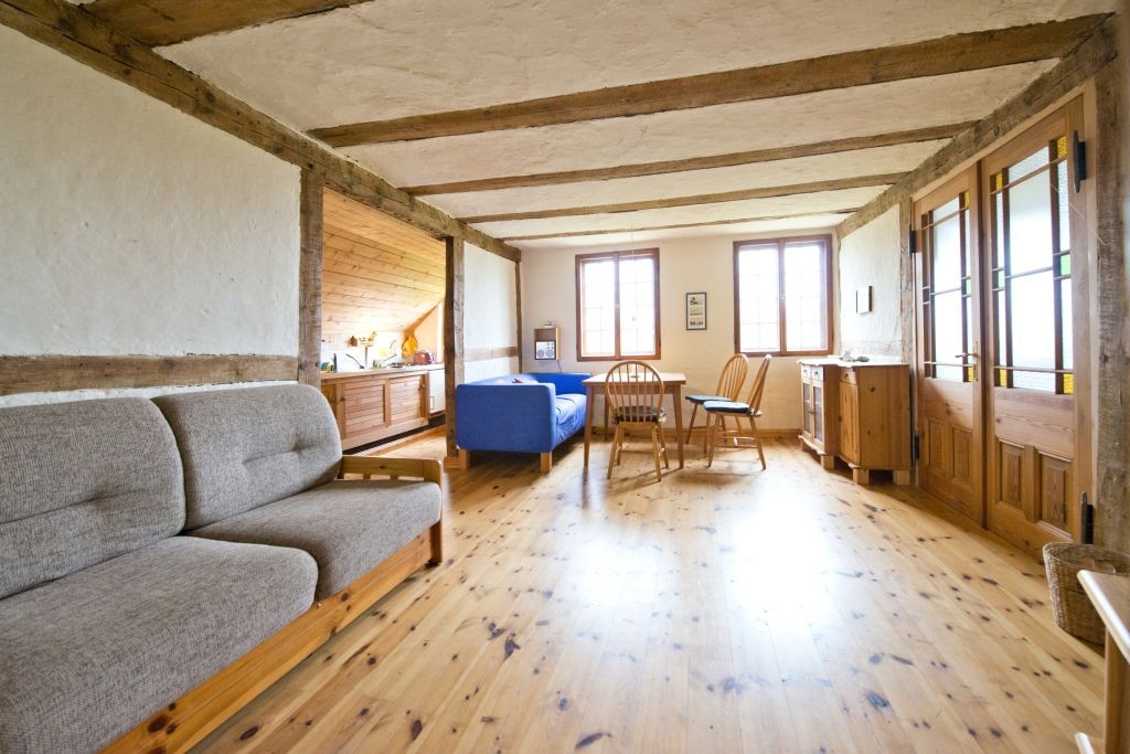 Das Erdgeschoss ist mit Natursteinböden und Fußbodenheizung ausgestattet, während im Obergeschoss Heizkörper sowie Eichen- und Kieferndielen verbaut wurden.