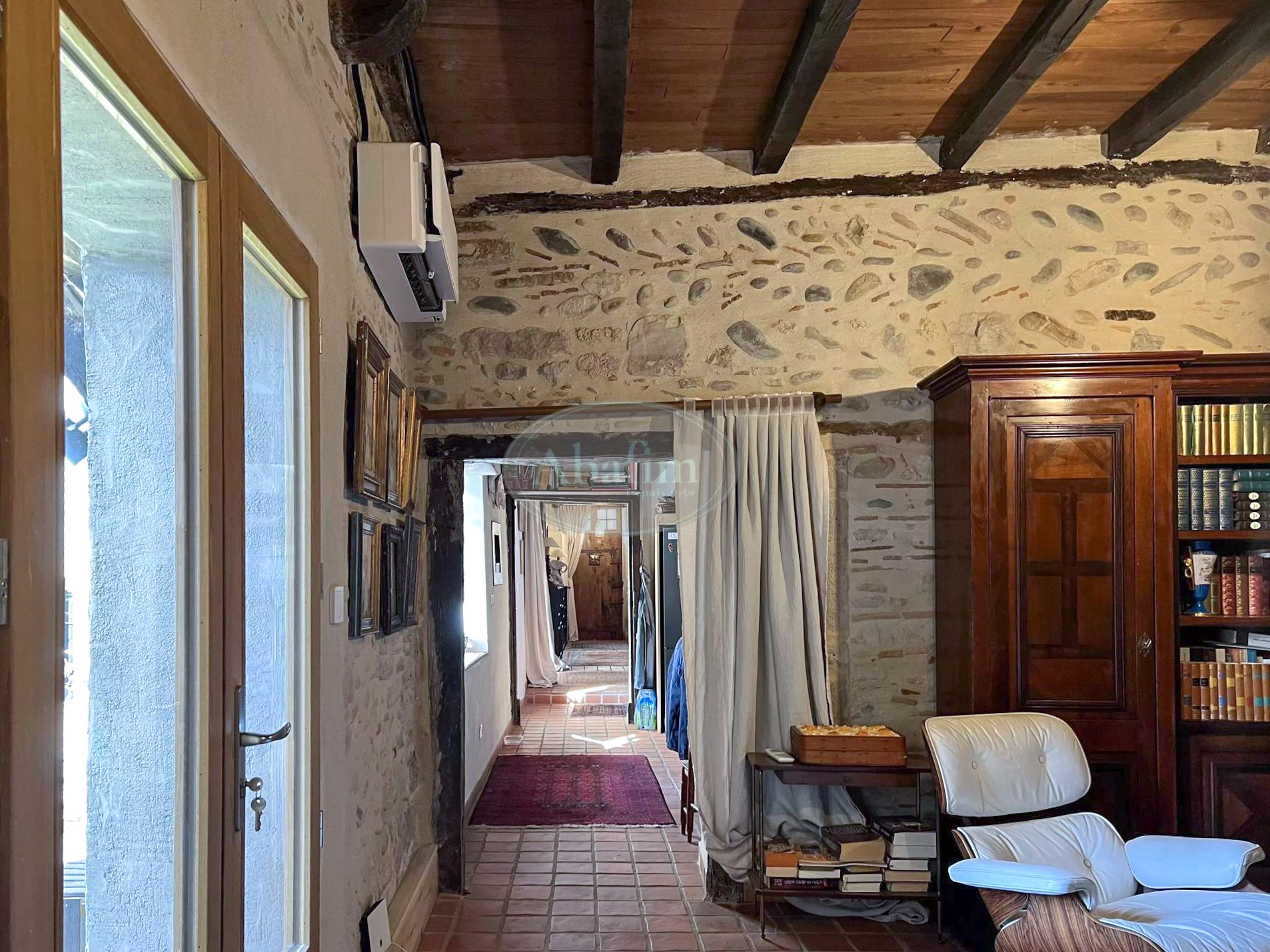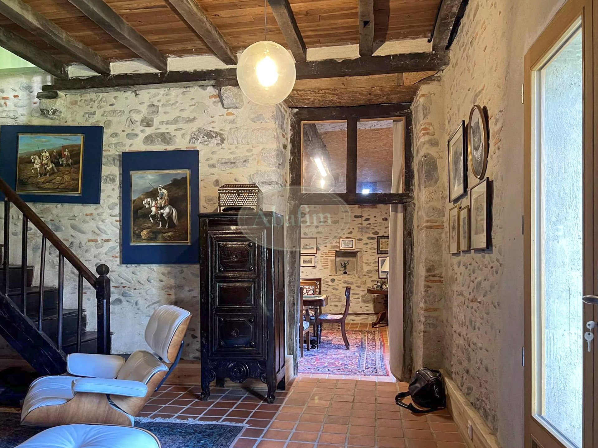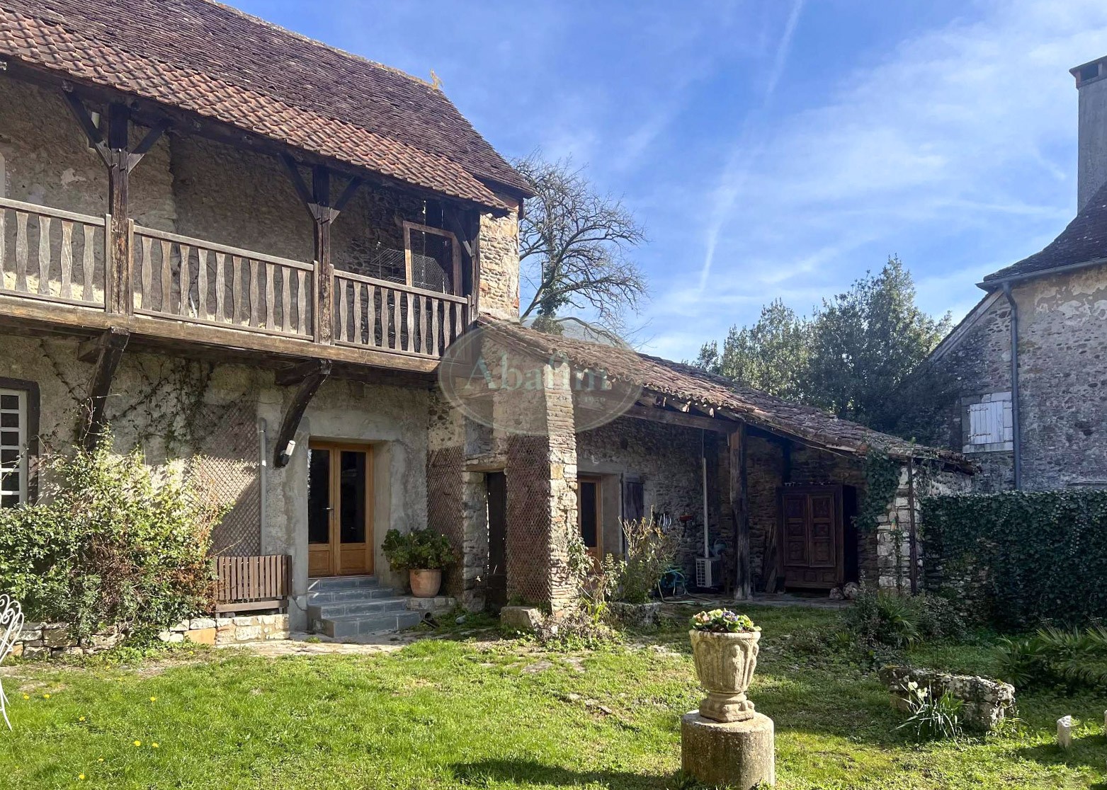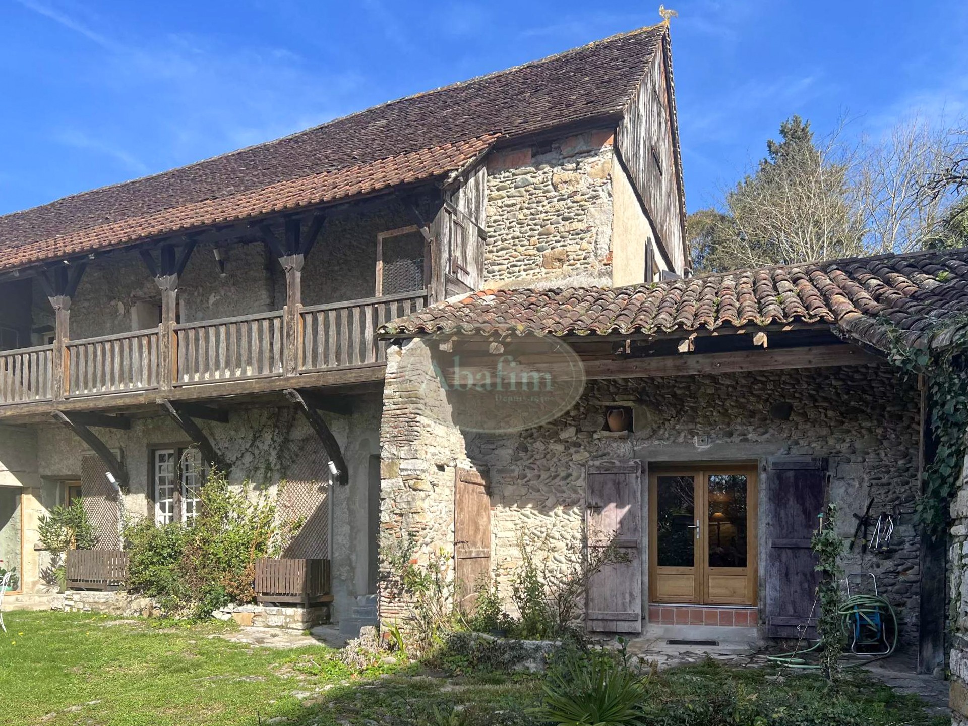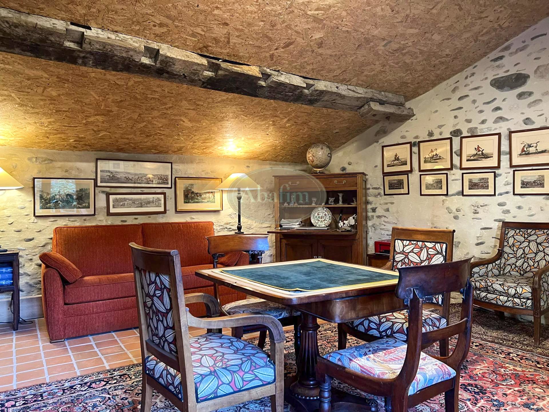 Una galería exterior con vistas al jardín es característica de la arquitectura tradicional bearnesa de la época. En la propiedad también hay un edificio anexo que requiere reforma; existen presupuestos disponibles.