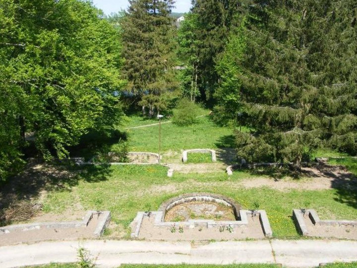 Zum Schloss gehört ein schönes, 5 Hektar großes Parkgrundstück, das zur Seeseite hin abfällt. Im Park gibt es einen kleinen Teich und viele seltene Baumarten. Die Gesamtfläche beträgt 1.700 m². Das Grundstück ist vollständig mit einem Metallzaun sowie einer Steinmauer umfriedet. Die Zufahrt erfolgt durch ein geschmiedetes Tor.