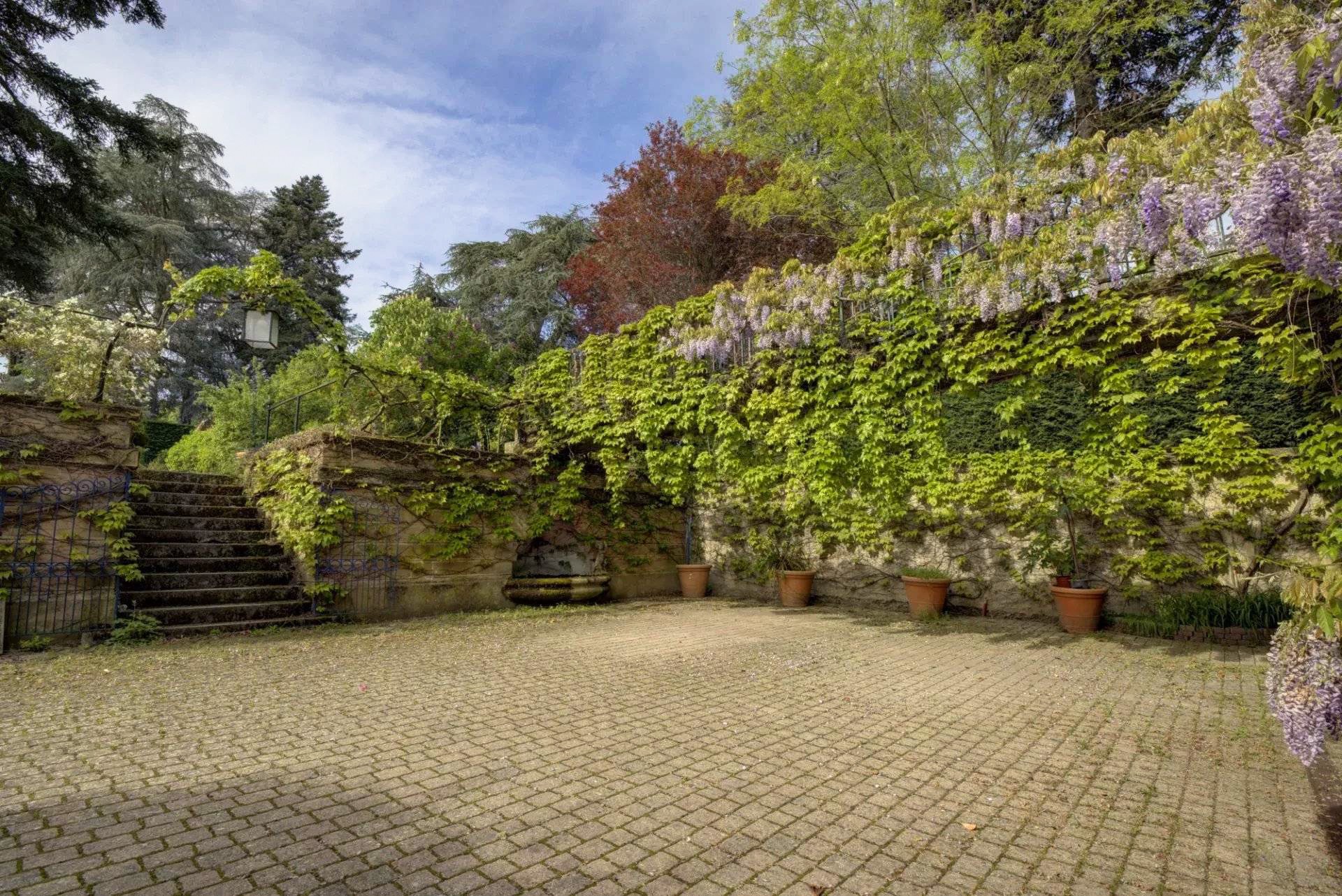 Los amplios espacios con techos altos, las exquisitas chimeneas de época, la magnífica escalera y el exterior con fuentes antiguas y un puente encantador hacen de esta propiedad una verdadera joya para los amantes de las casas históricas.