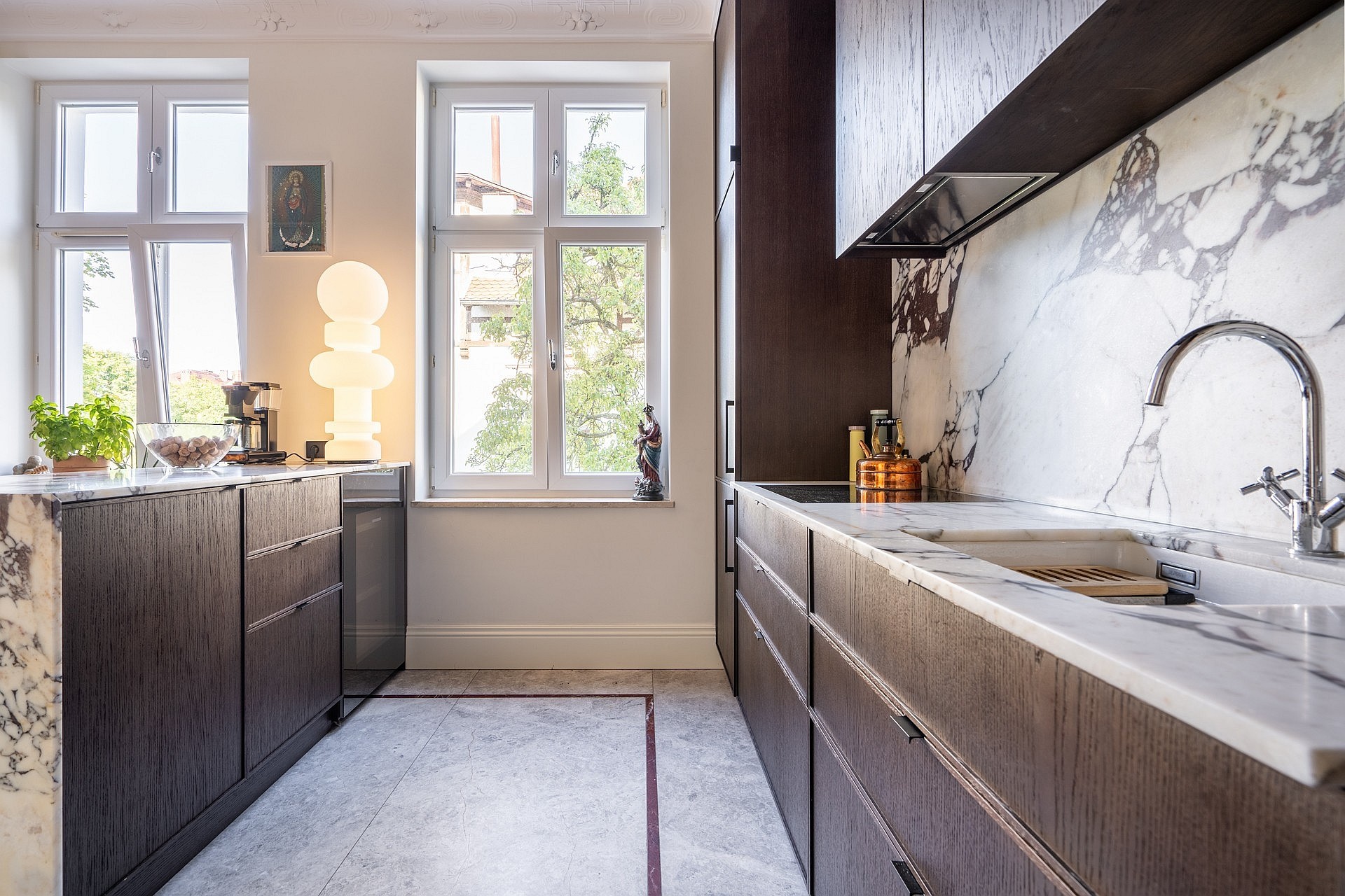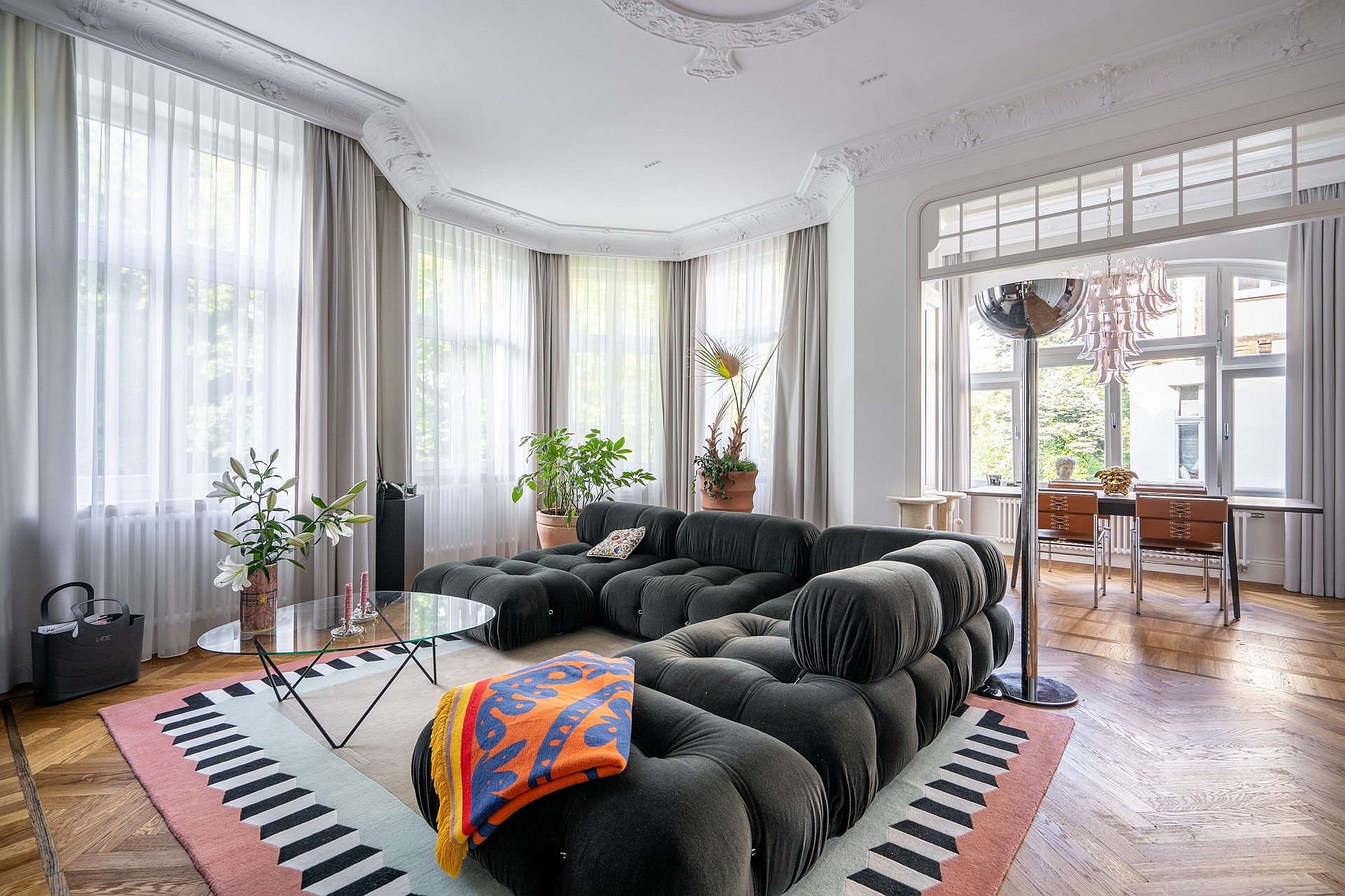 Apartamento de 93 m² en la primera planta de un edificio antiguo rehabilitado en la calle ul. Księcia Józefa Poniatowskiego, una calle tranquila que conecta ul. Parkowa con el paseo marítimo y que, a principios del siglo XX, estaba flanqueada por villas y pensiones. La ubicación combina la tranquilidad de Sopot-Dolny con la cercanía al mar y a las direcciones más céntricas del balneario.