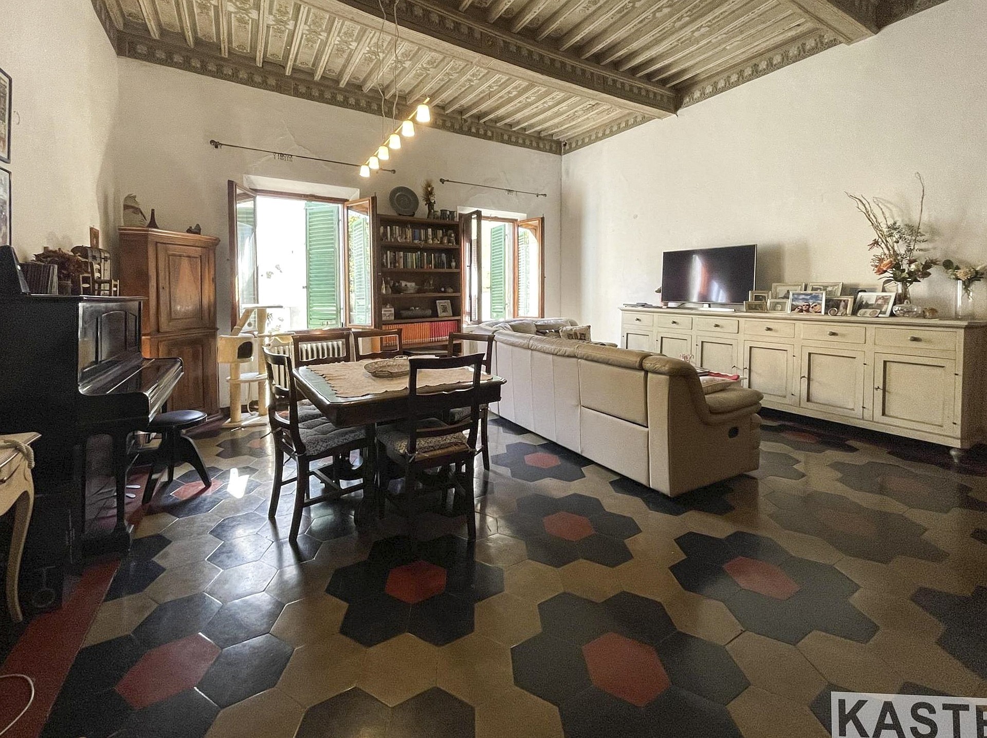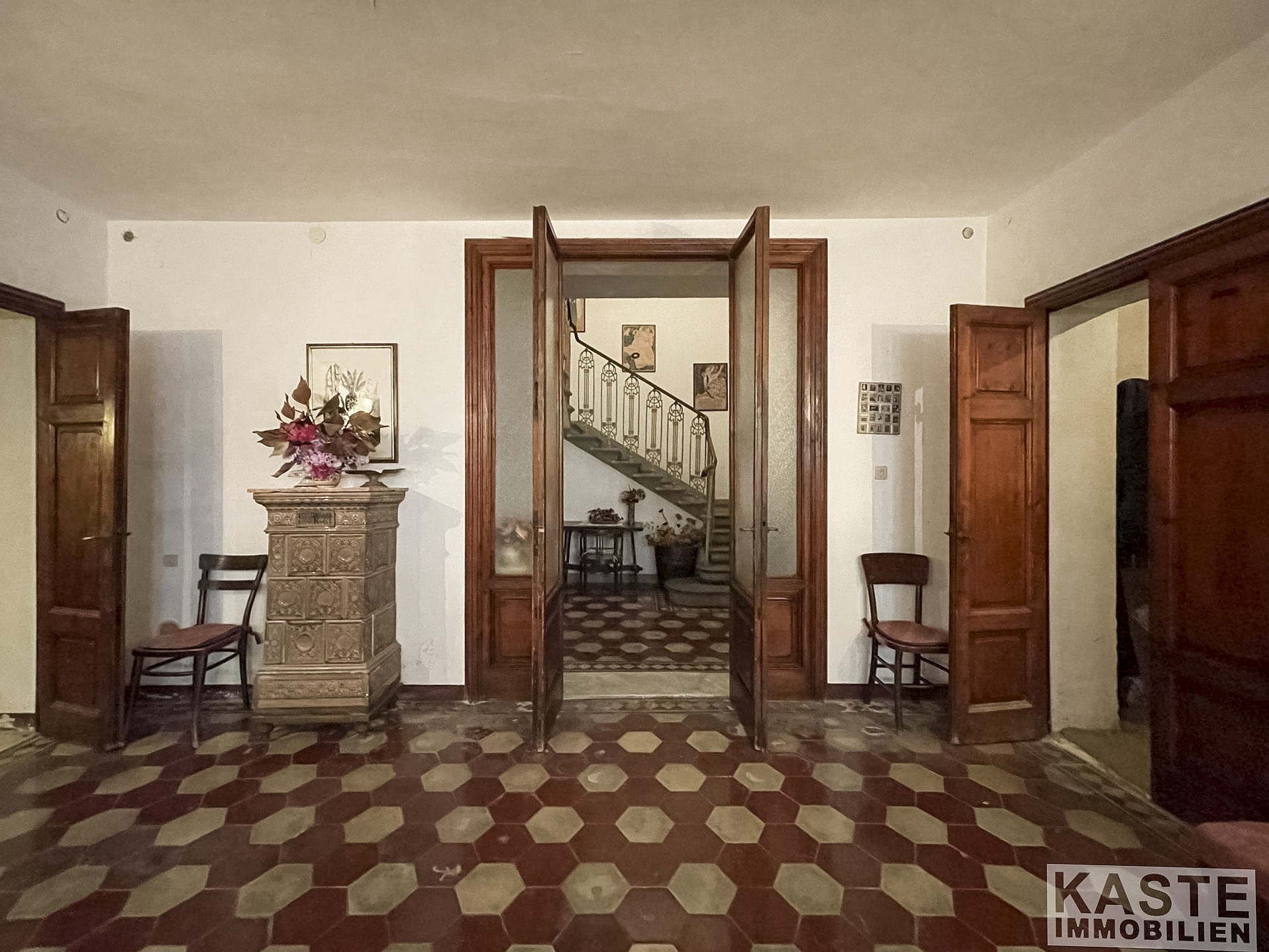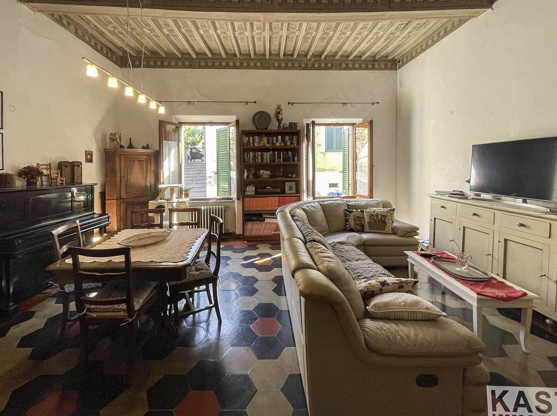 Toda la casa abarca tres pisos y tiene una bodega con una superficie de aproximadamente 300 metros cuadrados. Aunque la propiedad requiere renovación, cuenta con detalles históricos originales de alrededor de 1900, como hermosos pisos de mosaico y techos de madera ornamentados.