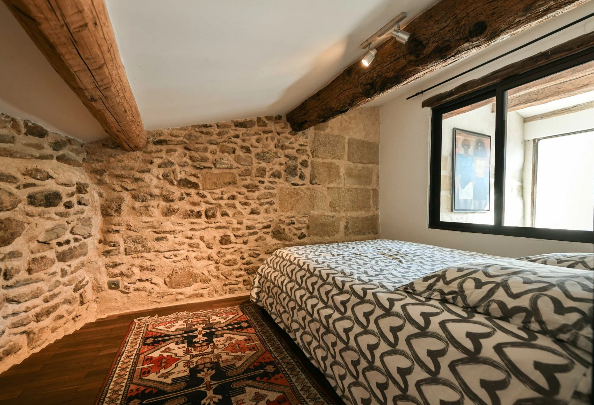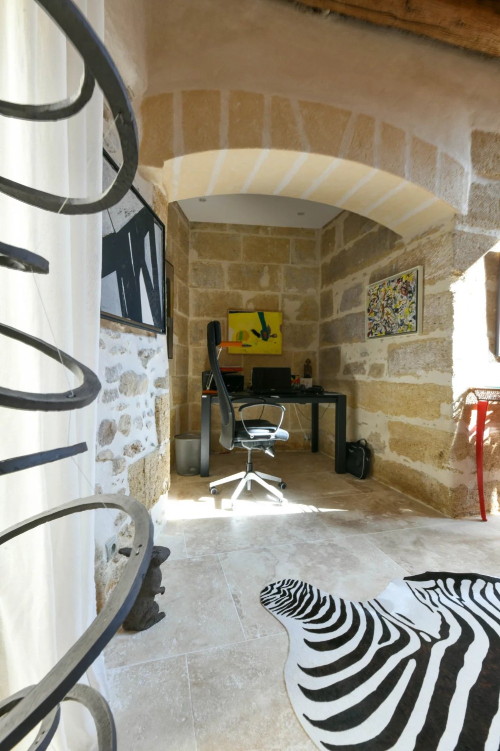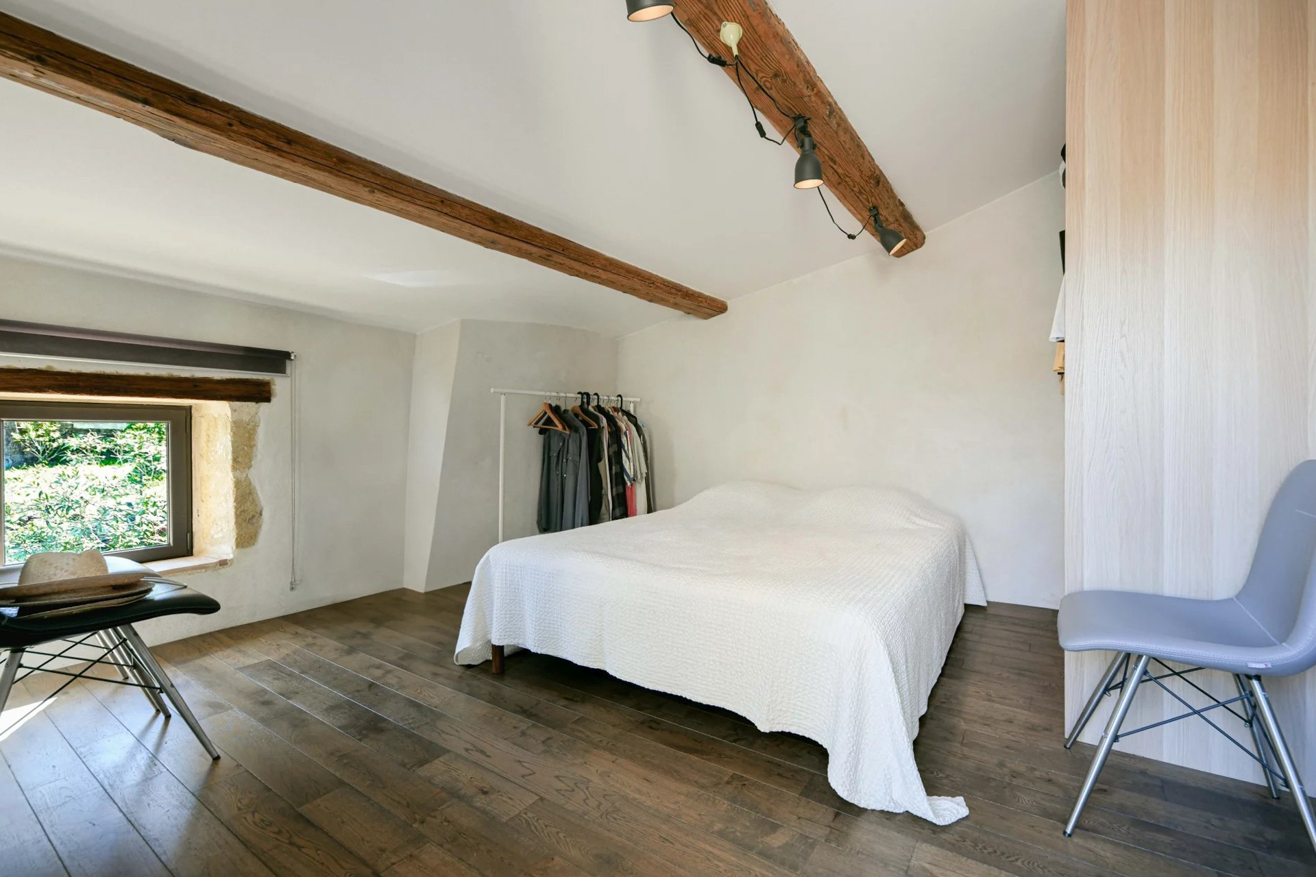 Una antigua almazara convertida en vivienda, situada a aproximadamente 17,5 km de Uzès. El edificio se desarrolla en dos niveles y conserva los volúmenes característicos de su arquitectura industrial original.