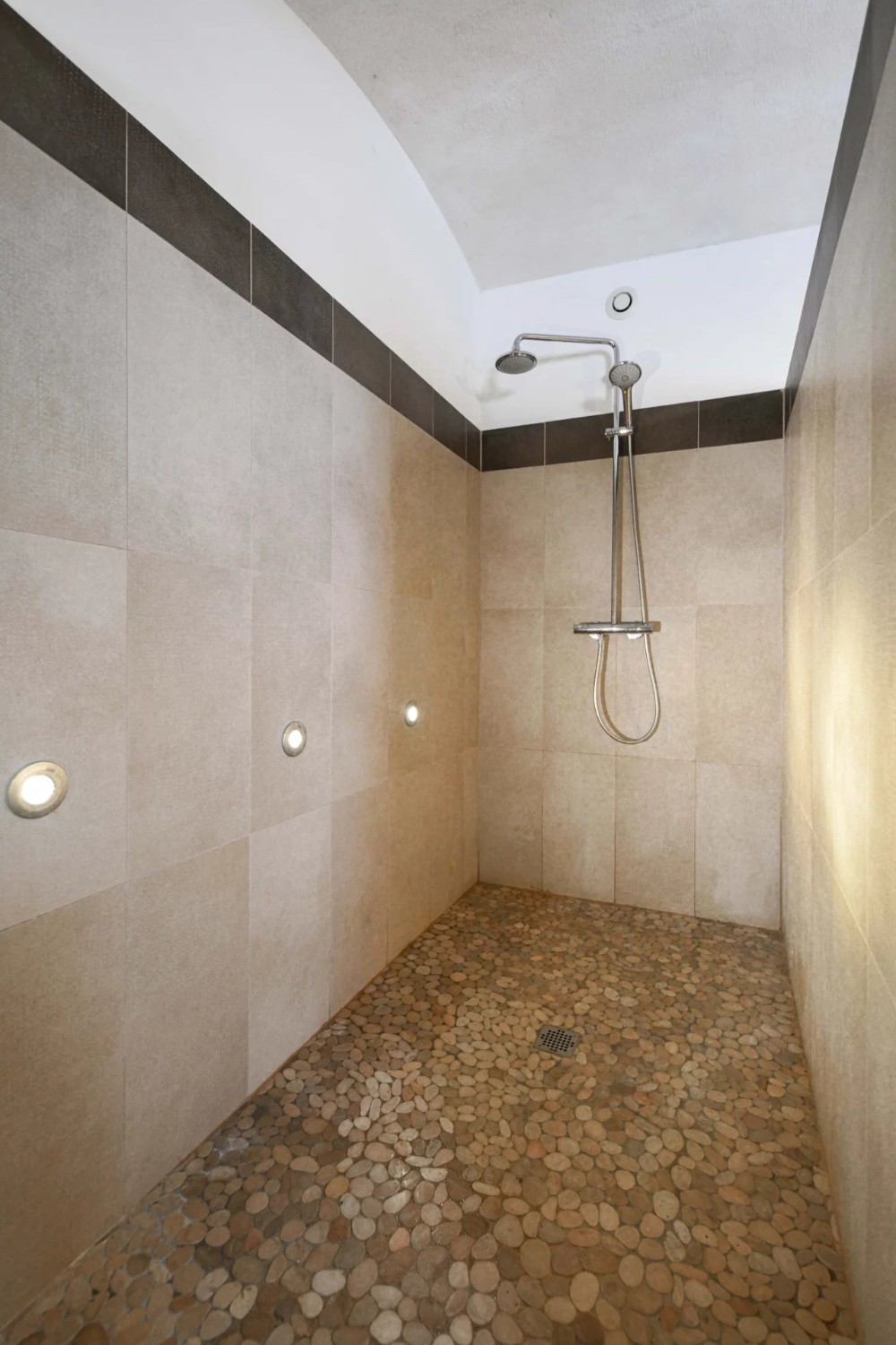La planta superior incluye una cocina abierta con vistas al salón, así como un dormitorio con vestidor. Una terraza privada da acceso a un tercer dormitorio independiente.