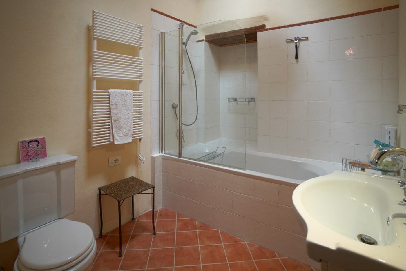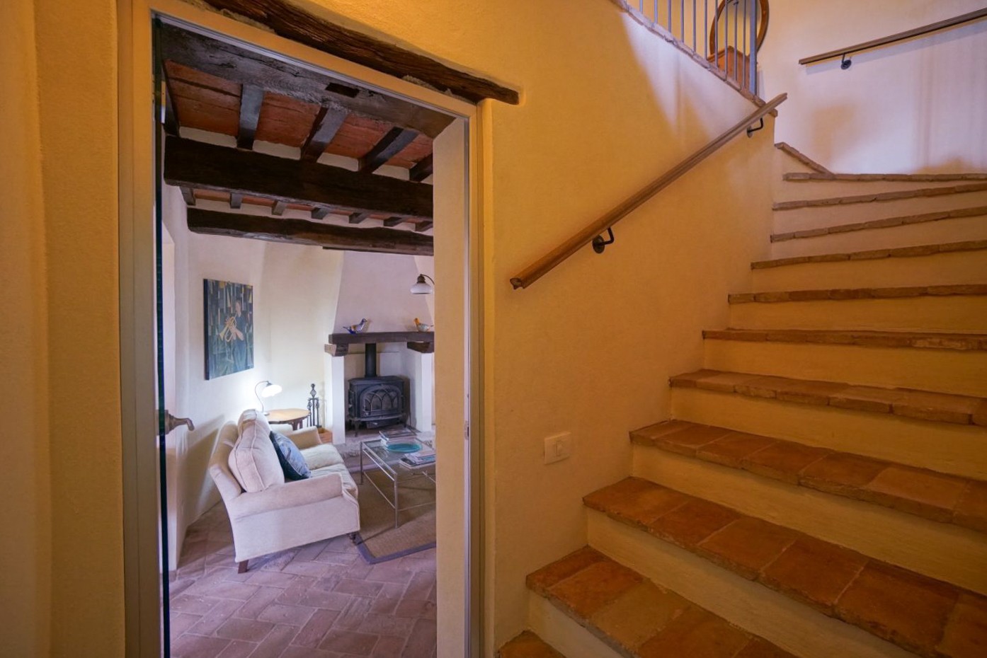 En la planta superior destacan suelos de terracota hechos a mano y una chimenea de piedra. Hay dos salas de estar, un baño y dos dormitorios. El dormitorio principal, situado en el tercer nivel, ofrece impresionantes vistas a las montañas desde cada ventana. Un baño muy amplio, con ducha y bañera, completa esta planta.