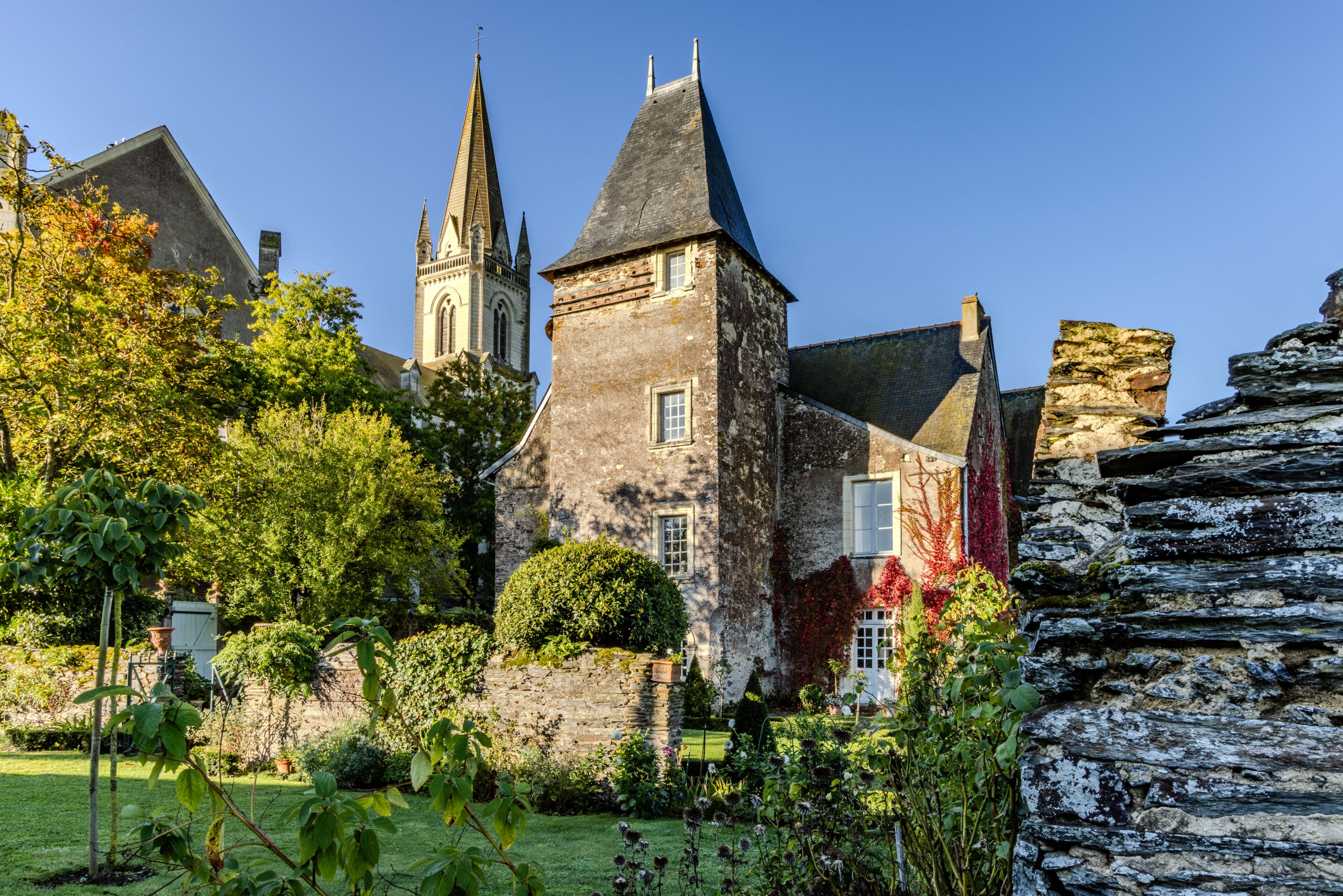Esta propiedad histórica, de gran calidad, combina de forma armoniosa su arquitectura con su decoración interior. Los elementos que reflejan la transición entre el final de la Edad Media y el inicio del Renacimiento en esta región de Anjou se realzan con el refinamiento neoclásico de sus interiores. Su ubicación, entre ciudad y campo, ofrece una proximidad cómoda a numerosos servicios, lo que la hace ideal tanto para vivir todo el año como para escapadas de fin de semana. Las posibilidades de emprender proyectos creativos hacen de esta casa señorial una extraordinaria oportunidad de vida.
