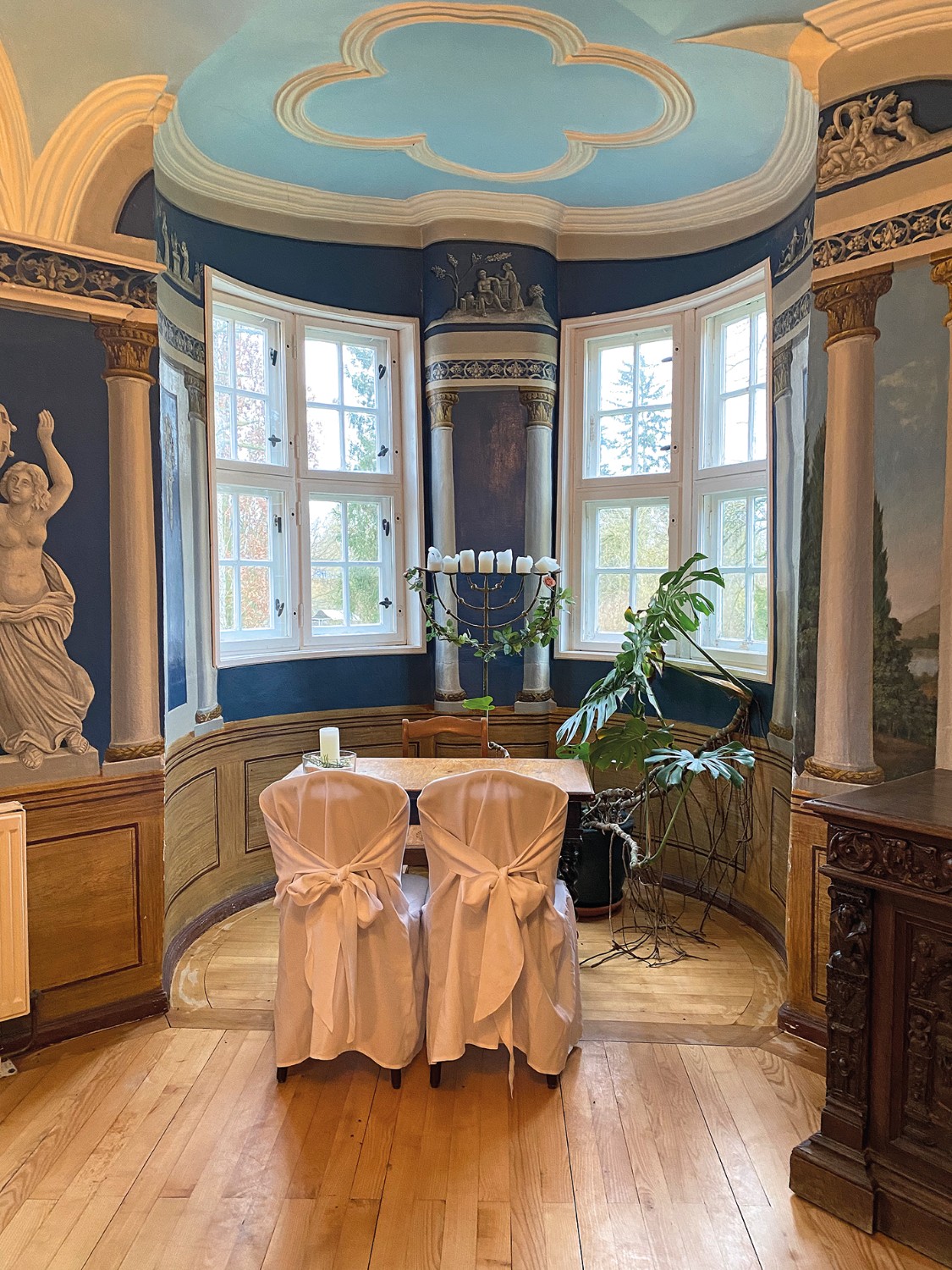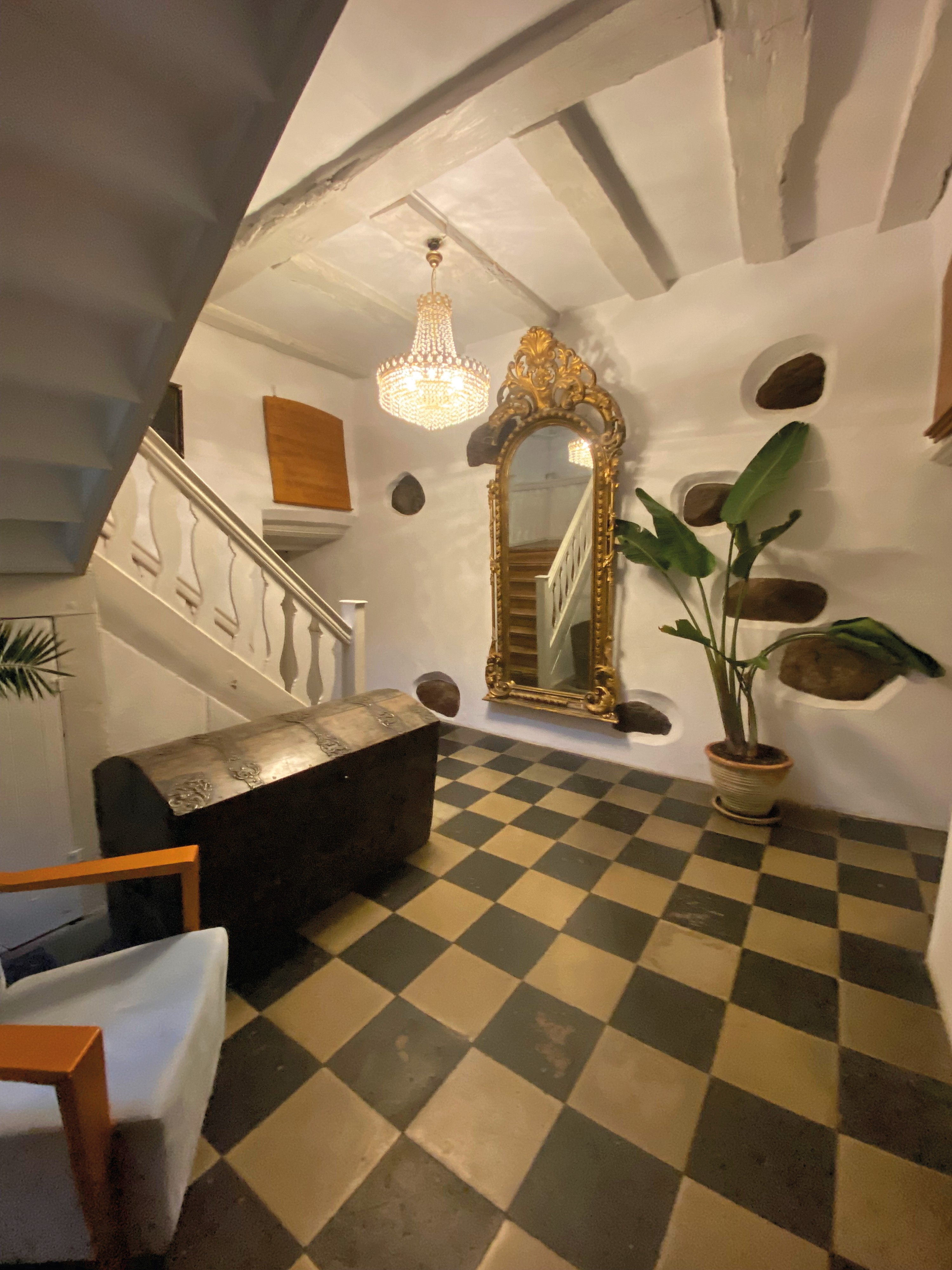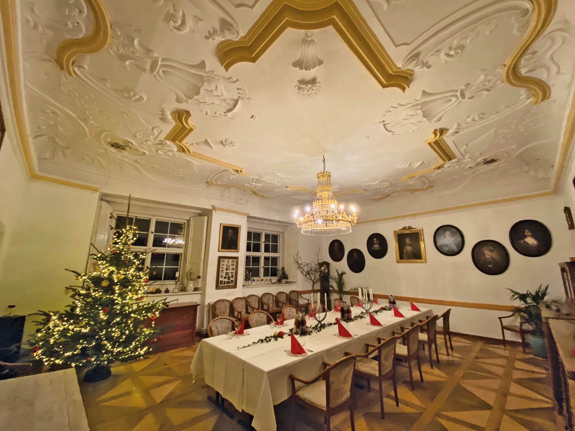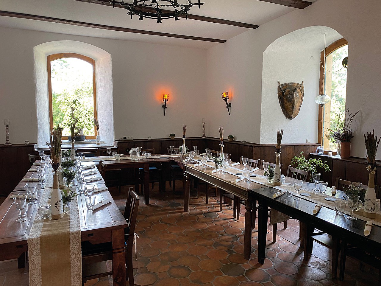 Los acogedores salones, la capilla azul con frescos de hace unos 300 años, el salón de celebraciones con techo estucado de estilo renacentista italiano, la galería de arte, el parquet y el vestíbulo con baldosas antiguas contribuyen a crear un hogar lleno de historia y carácter.