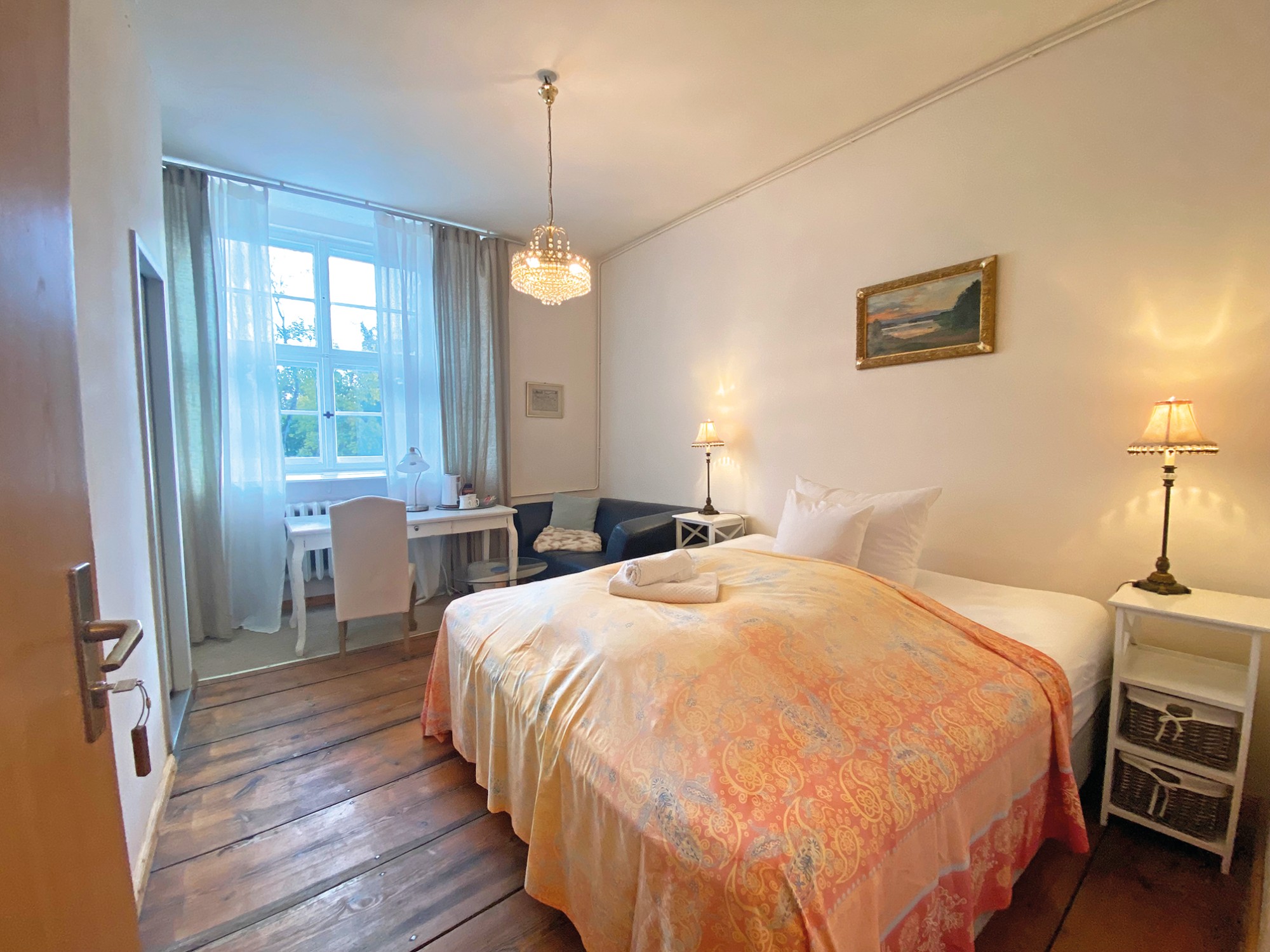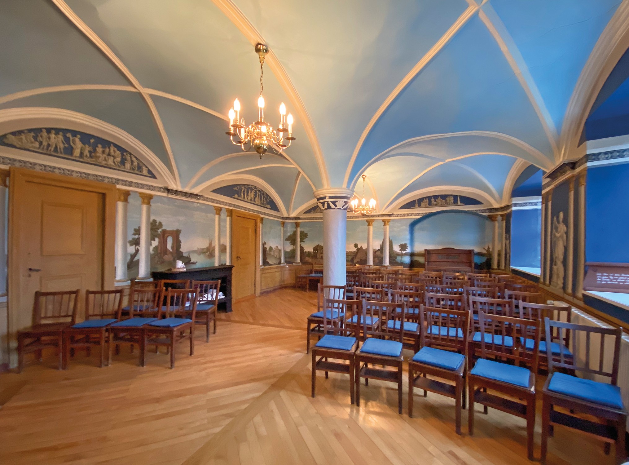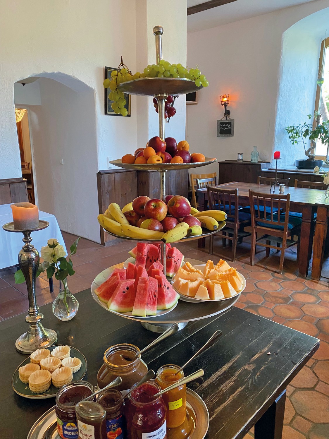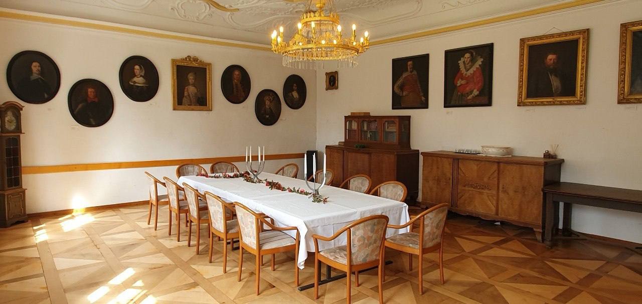 Los acogedores salones, la capilla azul con frescos de hace unos 300 años, el salón de celebraciones con techo estucado de estilo renacentista italiano, la galería de arte, el parquet y el vestíbulo con baldosas antiguas contribuyen a crear un hogar lleno de historia y carácter.