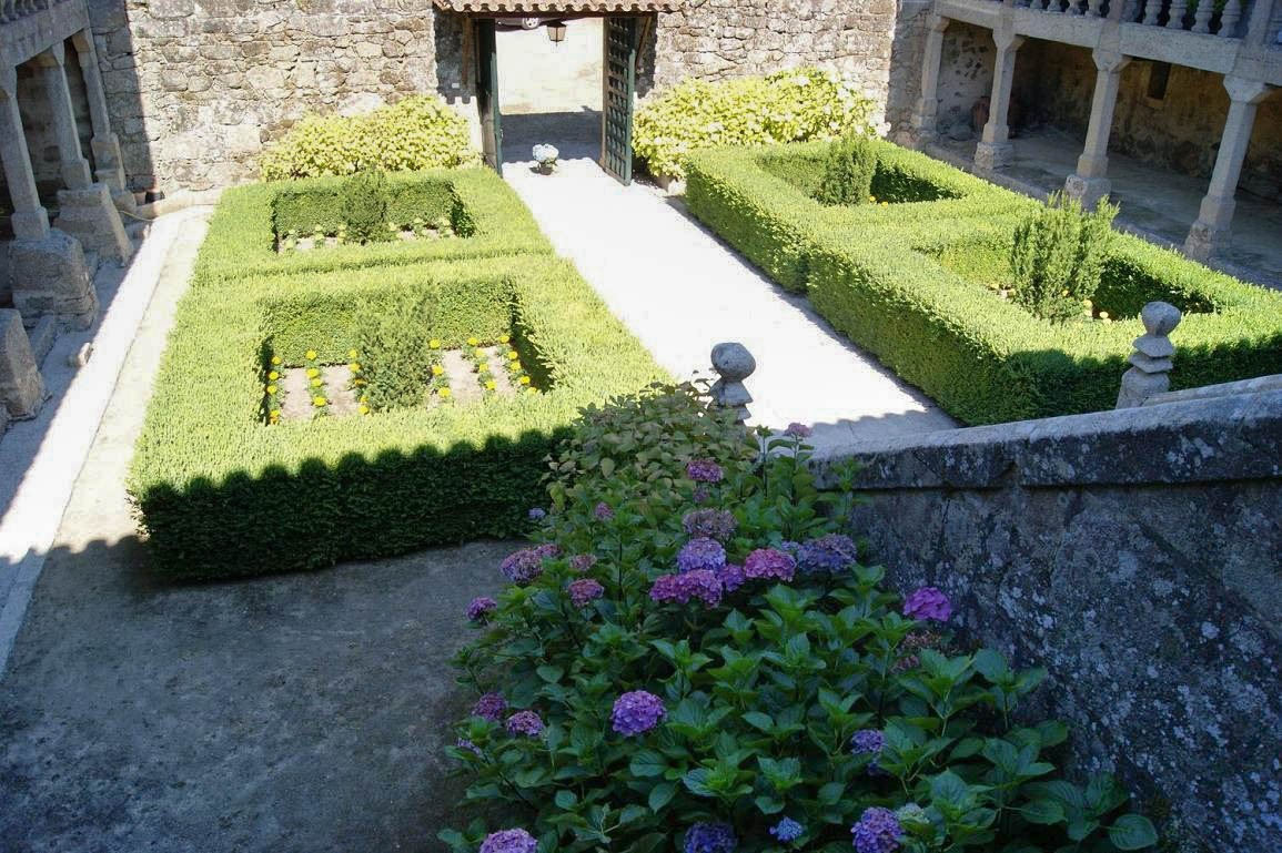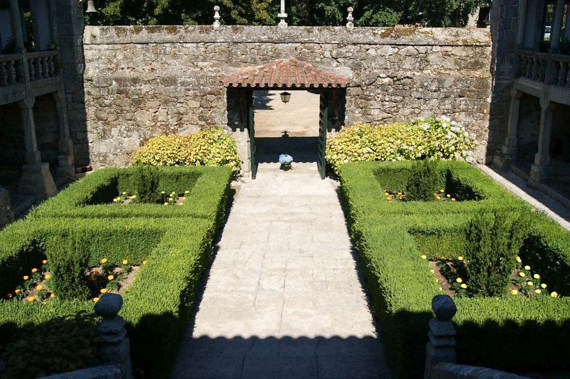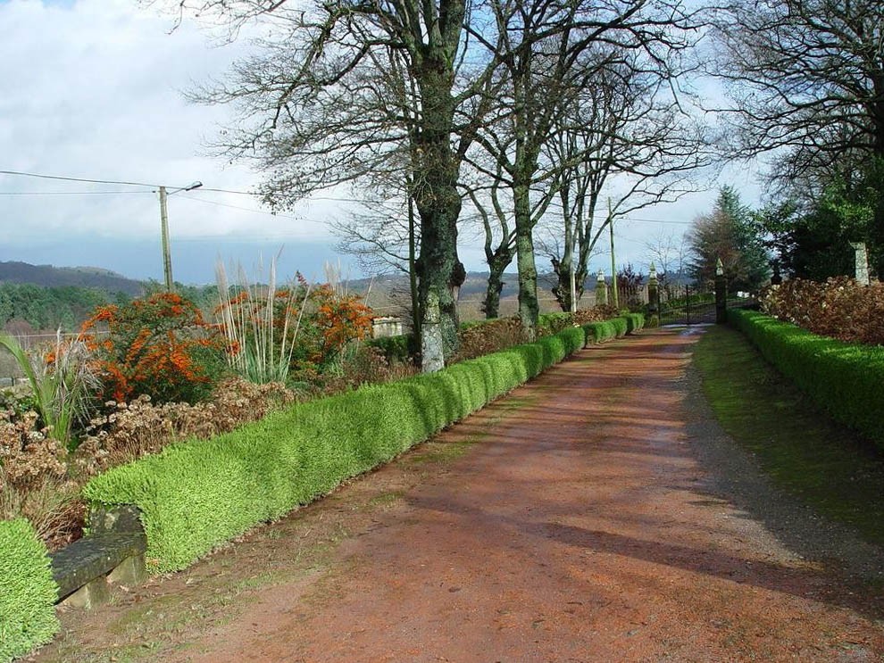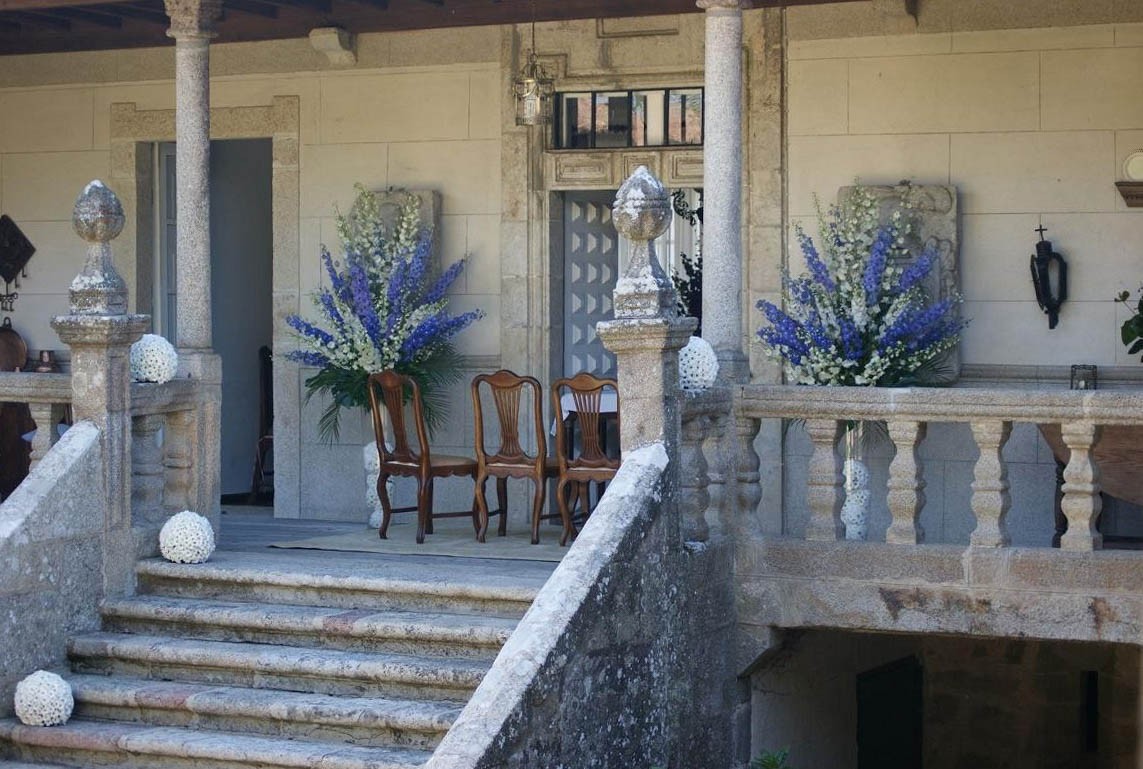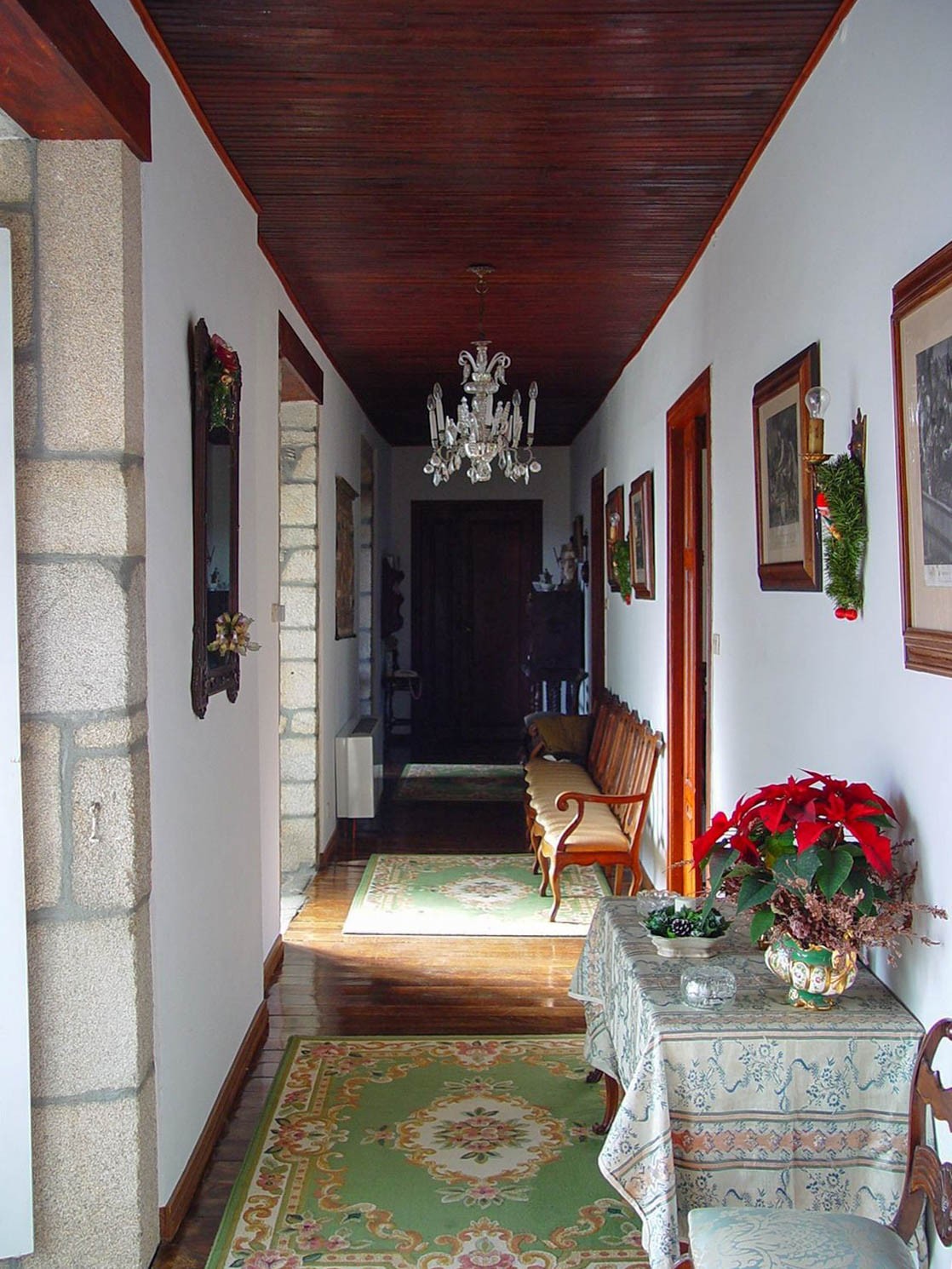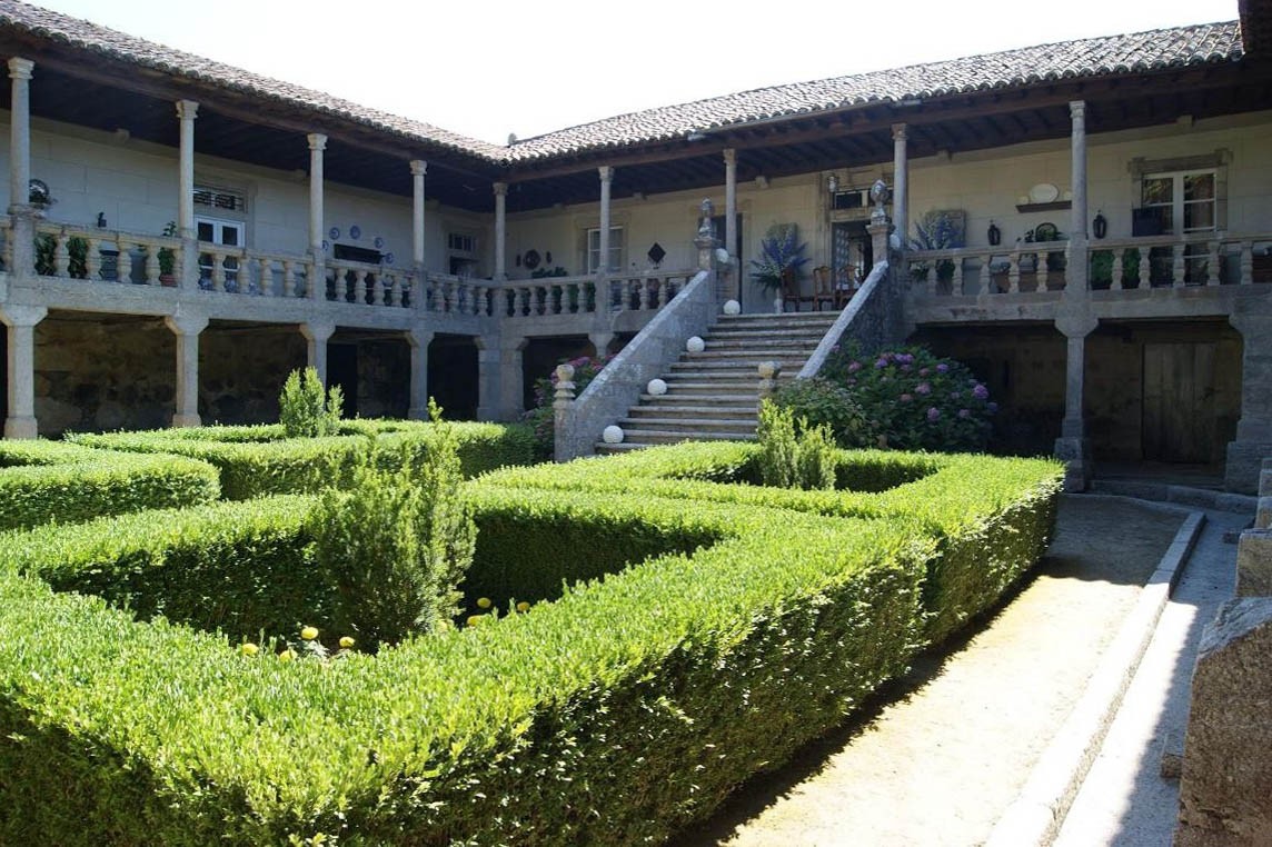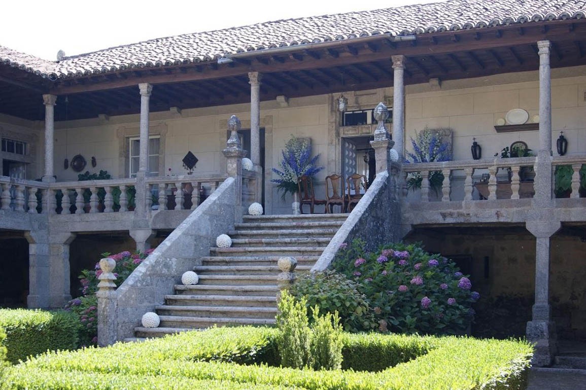 • La planta noble se accede a través de la magnífica escalera que conduce a los escudos de armas del "Pazo de Maside". El edificio de gran volumen consta de tres estructuras con una valla alta y una puerta con un escudo. El acceso se realiza a través de un pasillo exterior y un noble bosque de robles con árboles centenarios.