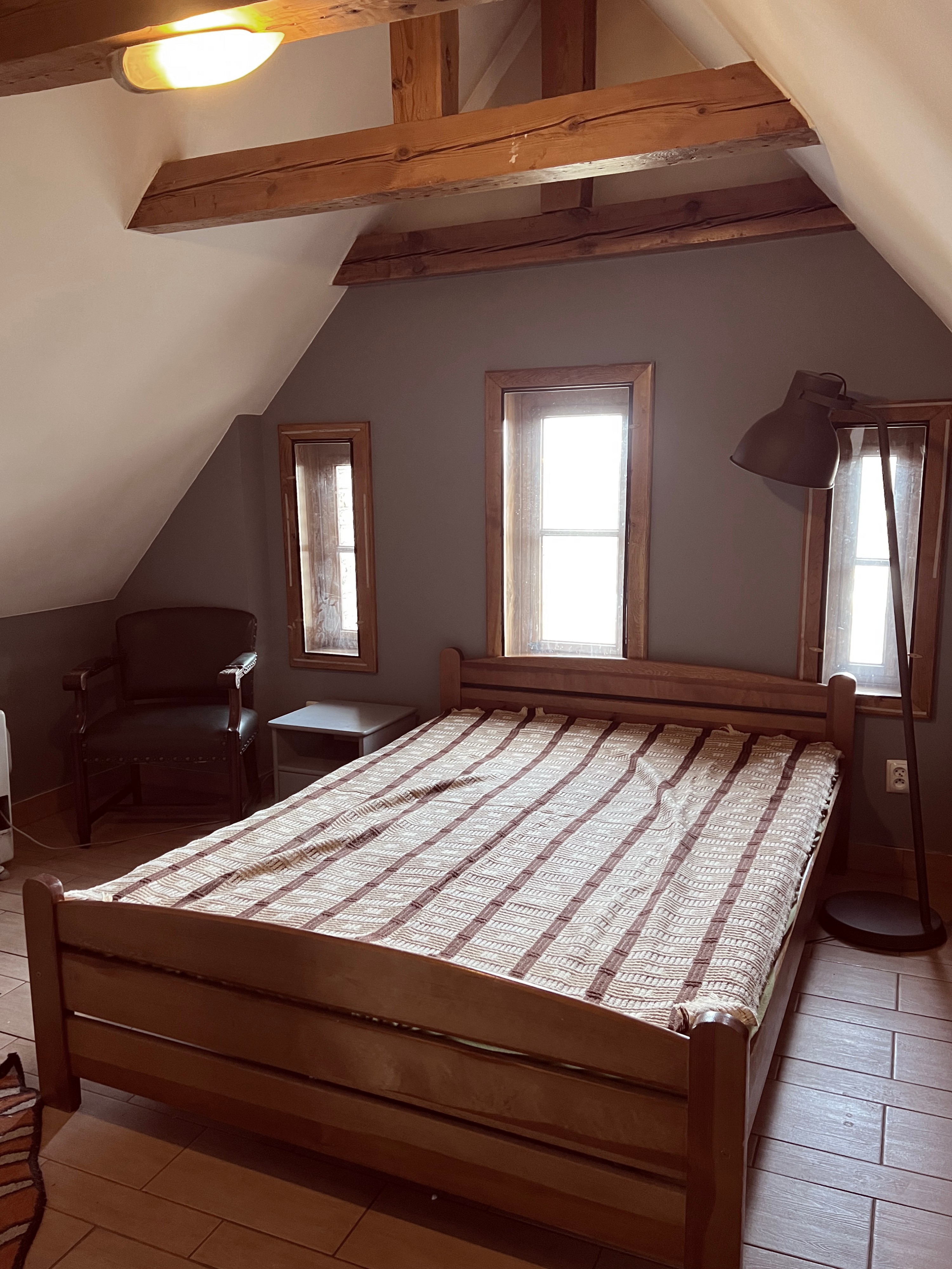 El castillo dispone de dos dormitorios, un cuarto de baño, un amplio y soleado salón con chimenea, una cocina y una bodega, también con chimenea.