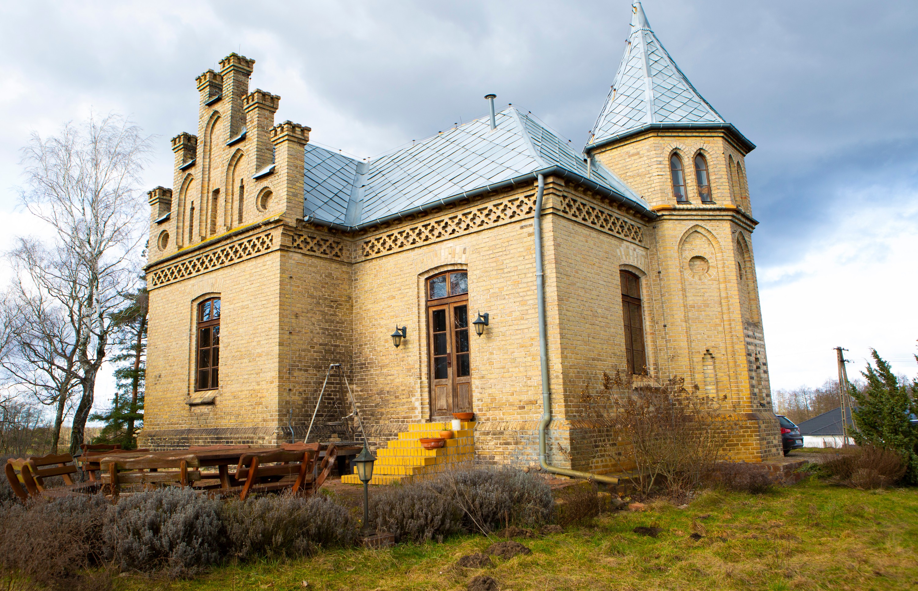 El pabellón de caza se construyó a finales del siglo XIX, perteneció a la familia Skórzewski y se utilizó como residencia para cacerías y viajes de recreo. Está situado en una colina, rodeado de campos, prados y bosques, directamente en el Nuevo Canal Notec, lejos del ajetreo de la ciudad.
