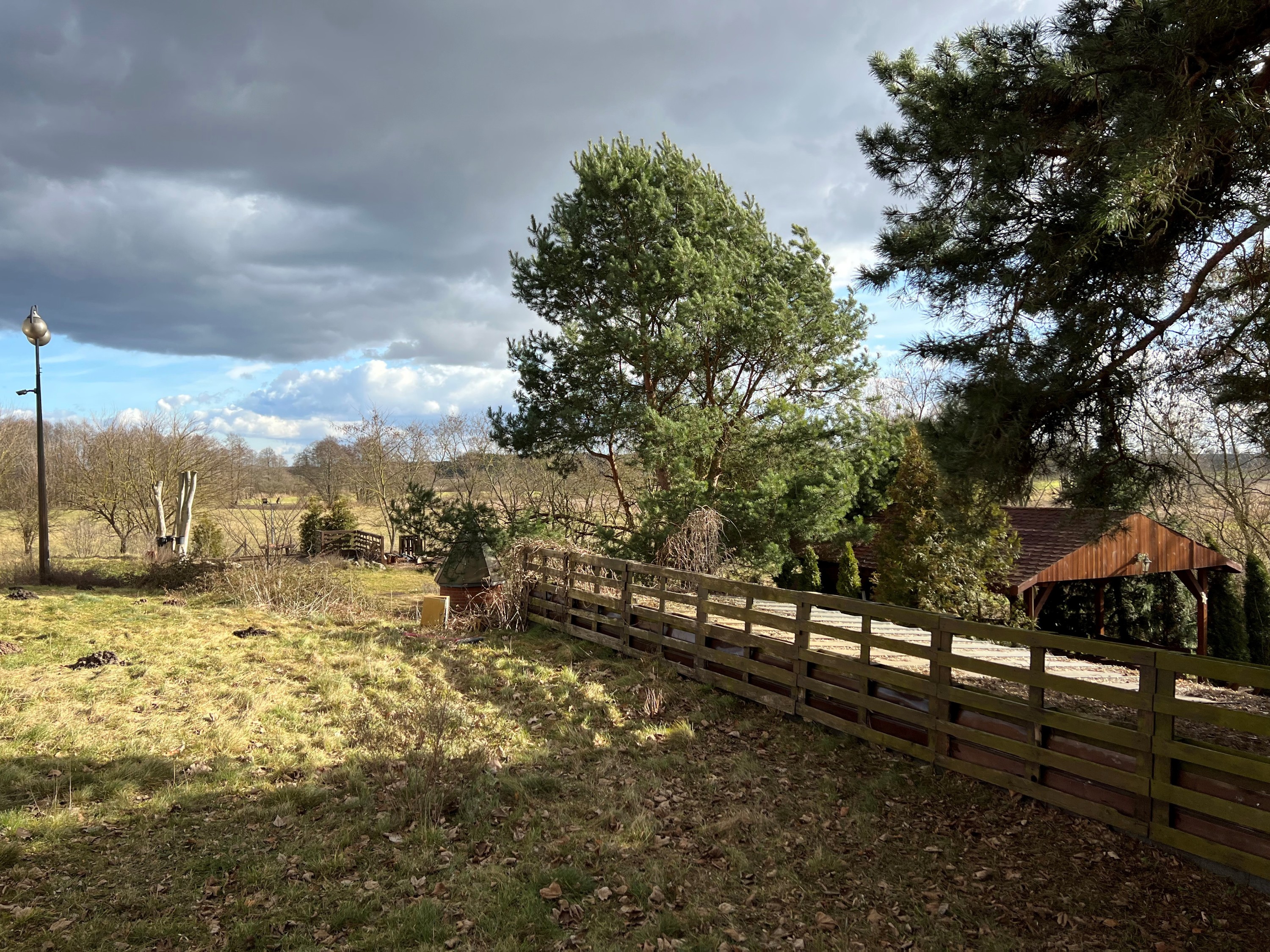 En el terreno vallado hay un pabellón con barbacoa y chimenea para fumar, un lugar para hacer una hoguera y una pequeña dependencia con un dormitorio, un cuarto de baño, una cocina y una sala de estar.