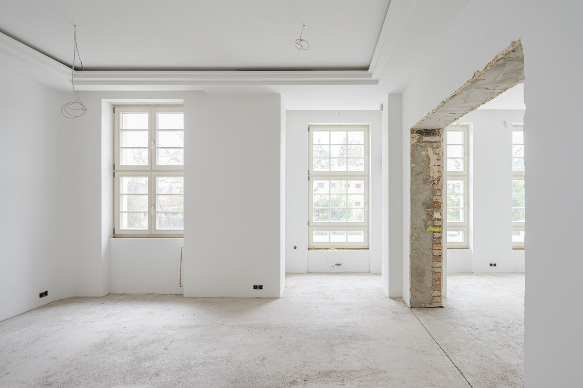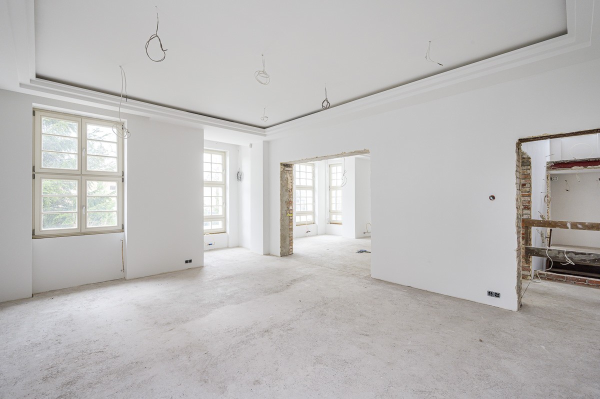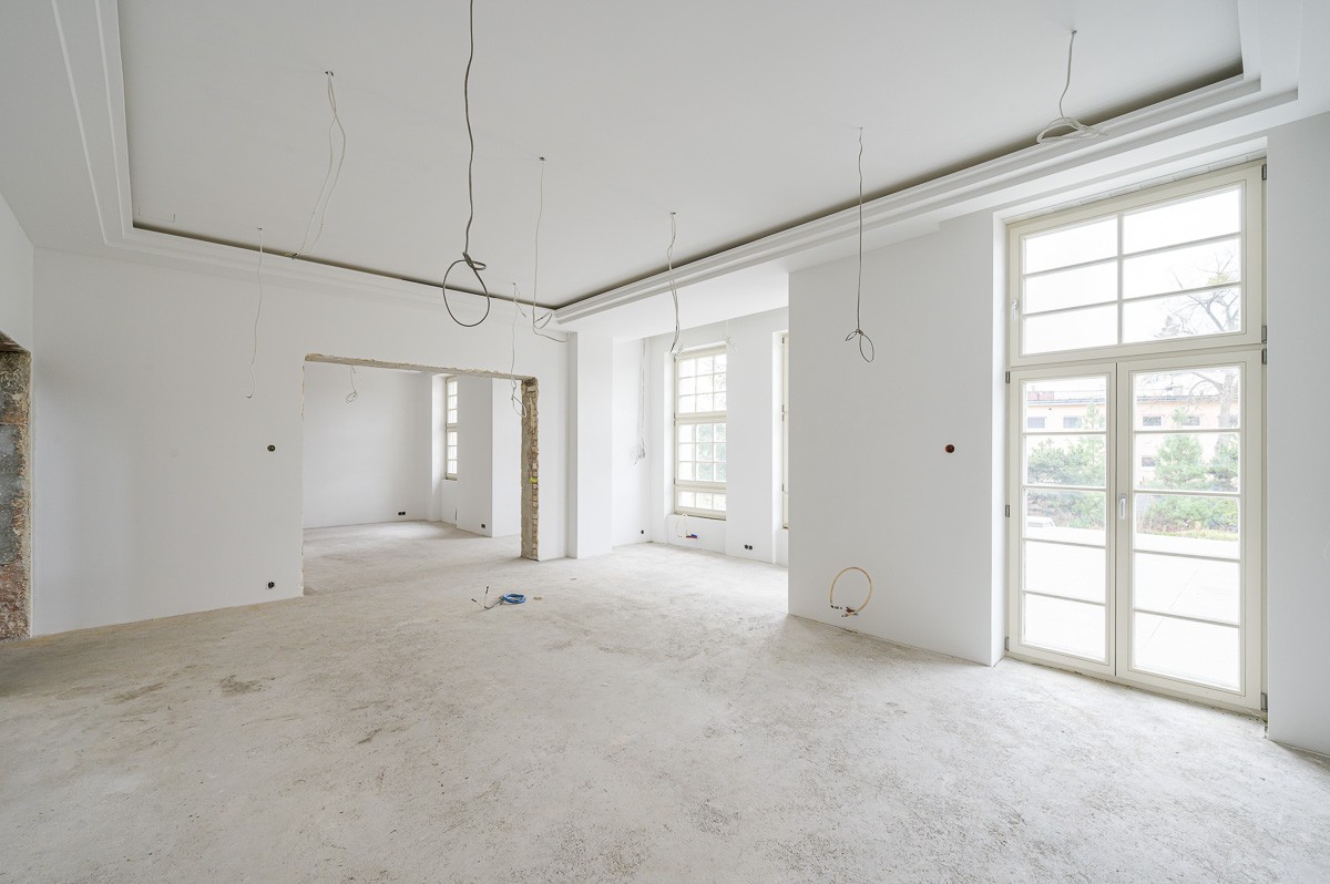 Los 537 m² de superficie útil están actualmente en estado de obra, pero ofrecen una sensación de amplitud notable. La distribución prevista incluye: