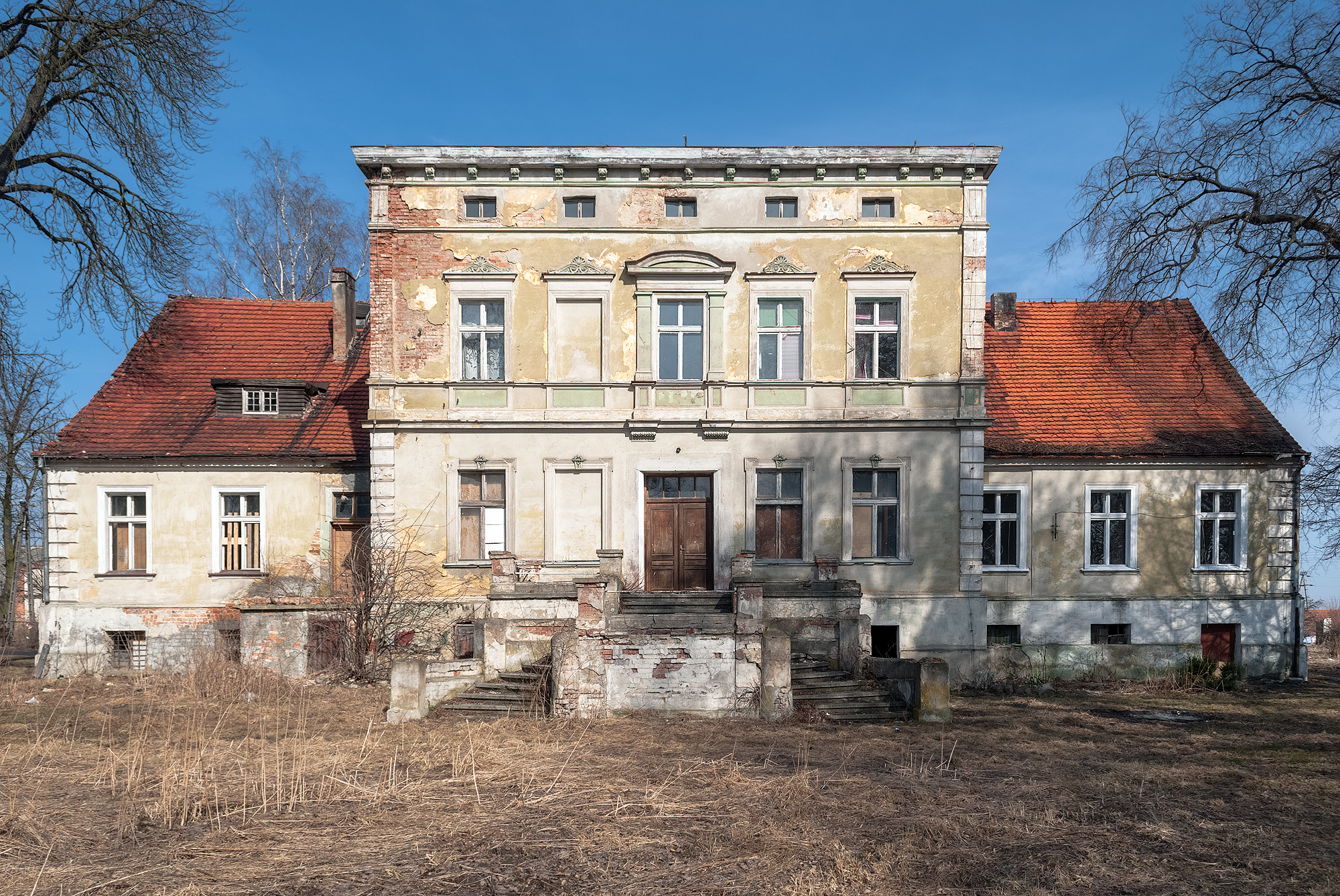 Glogau). Das dortige Gutshaus war im Kern ein schlichter klassizistischer Bau, der in der zweiten Hälfte des 19. Jahrhunderts historisierende Überformungen mit wuchtigem zweistöckigen Mittelteil erhielt. Die Hofseite wurde mit einem Portikus und repräsentativer Auffahrt ausgestattet.